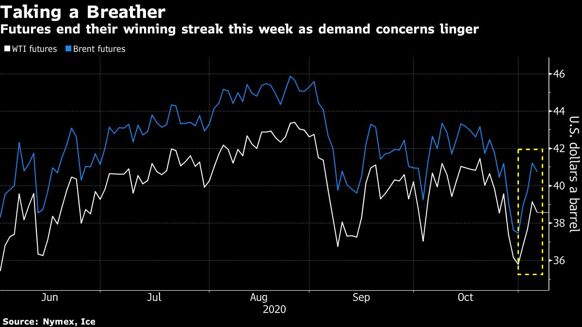 The oil market is also contending with renewed lockdown measures across Europe that further threaten the demand outlook. Greece became the latest European country to declare a national lockdown, while a surge in virus cases in the U.S. risks triggering more restrictions.