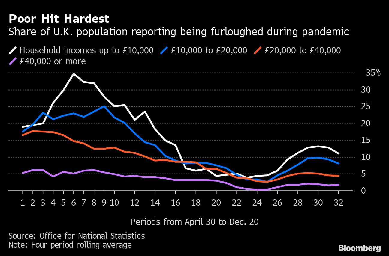 That’s about a fifth of the U.K’s adult population of 47 million people. The findings feed a debate about how Boris Johnson’s administration can best protect segments of the population like the young and lowest paid who have taken the hardest economic hit during the crisis.
