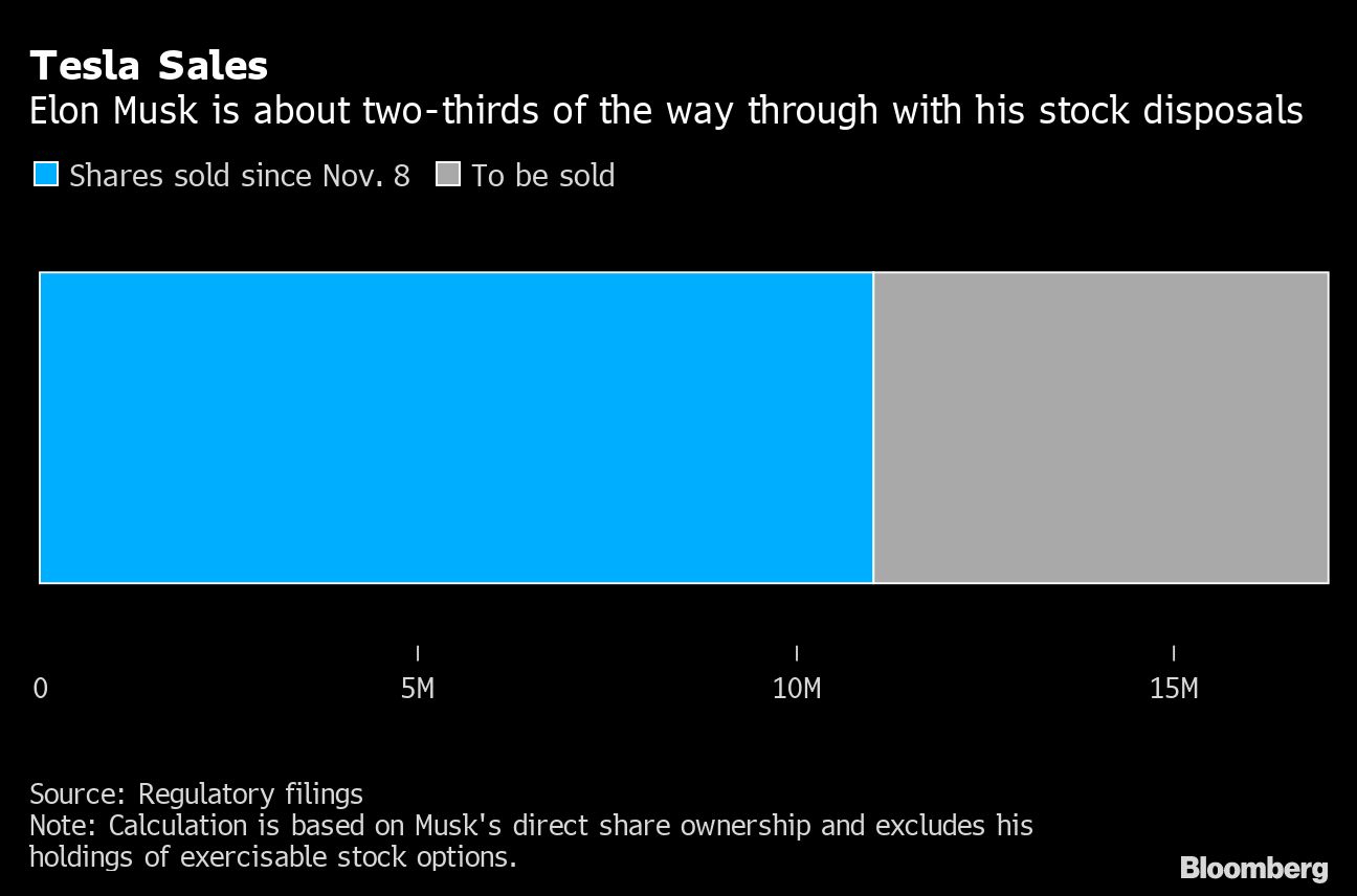 Tesla’s chief executive officer offloaded another $963 million worth of shares to pay taxes on the exercise of an additional 2.2 million options, according to regulatory filings dated Thursday. He’s now disposed of about $11.8 billion worth of stock over five weeks.