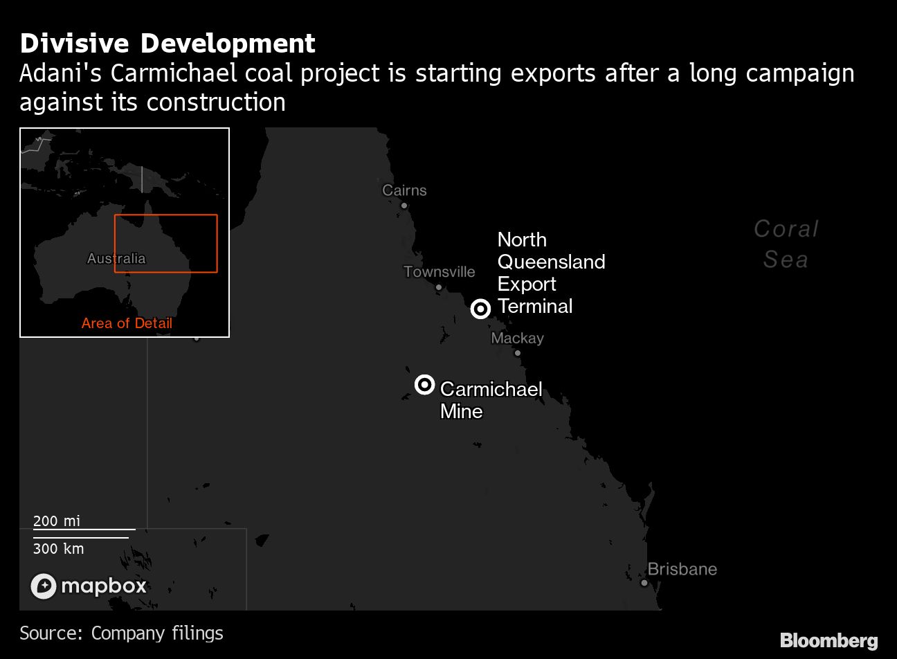 There have also been enduring concerns that the development, which includes a 200-kilometer (124 mile) railroad, could help enable a series of mines in Queensland’s previously untouched Galilee Basin, a coal-rich region about the same size as the U.K.