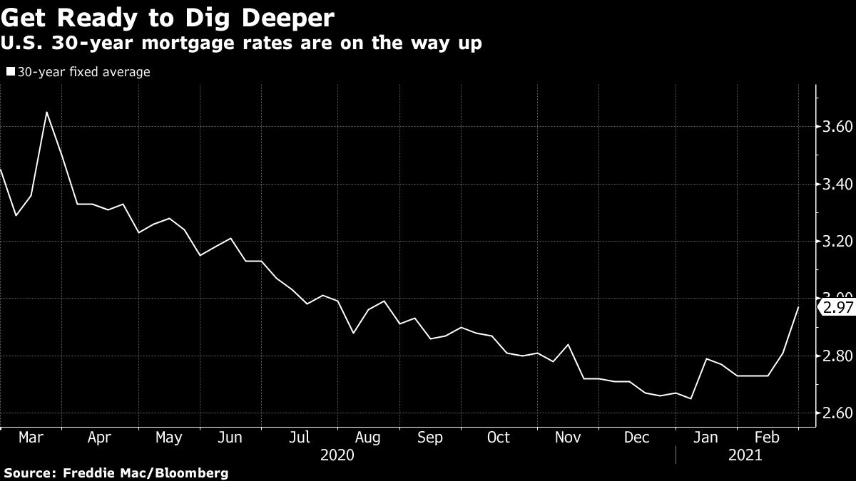 Mortgage rates in the U.S. rose to the highest level in six months, with higher borrowing costs threatening to crimp the pandemic housing rally.