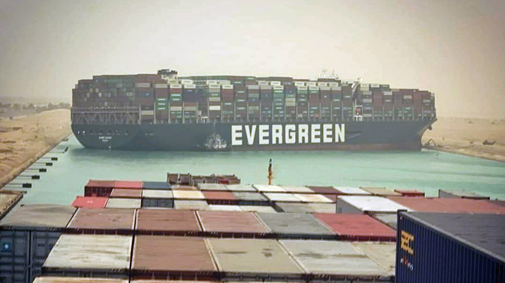 The grounding of a container ship in the crucial waterway has blocked traffic, raising fears of crude oil supply disruptions.