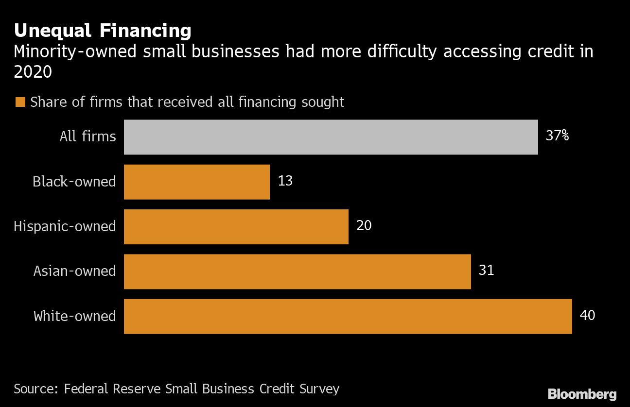 Minority-owned U.S. small businesses reported much weaker financial conditions than the average, a February survey from the Federal Reserve showed. The survey found that 88% of the firms surveyed with fewer than 500 employees said that sales were still below pre-pandemic levels.