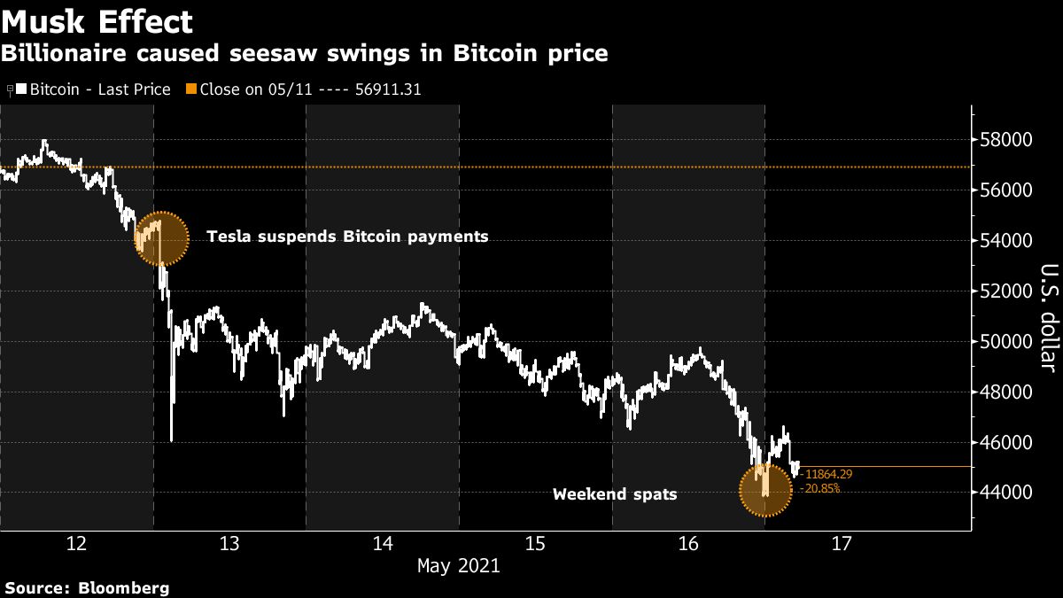 Musk effect: Bitcoin sinks to three-month low on Musk comments
