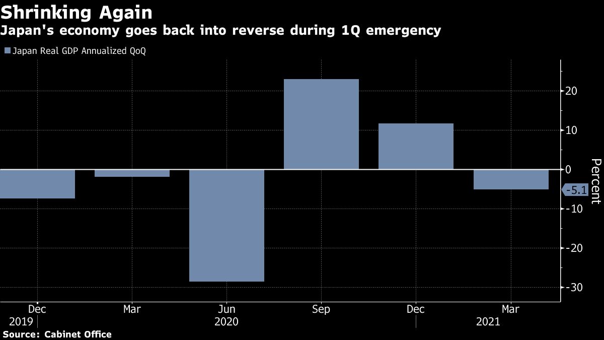 The decline was mainly due to a 1.4 percent drop in private consumption as state of emergency curbs to combat the pandemic kept residents at home and hit spending for clothing and dining out.