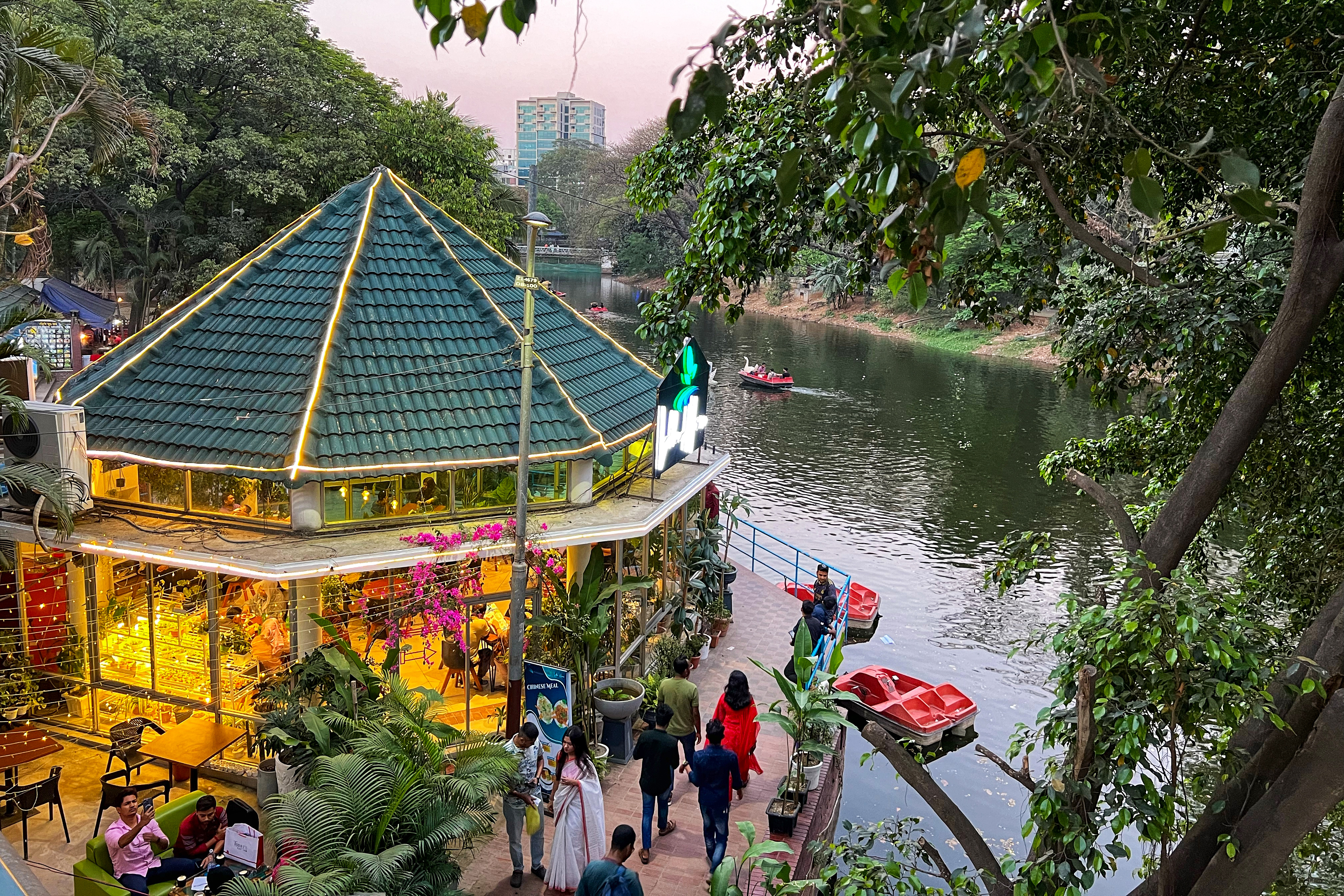 The disparity is hard to miss. Less than 3km (about 2 miles) from the Three building, along the same Gulshan Lake, lies Korail, Dhaka’s largest slum. Spanning an area equivalent to 40 football fields, Korail is set in stark contrast to its affluent neighbour, with four to five people crammed into tiny 100sq-foot (9sq-metre) rooms.