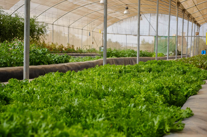 At Bustan, the first commercial aquaponics farm in Egypt, olive trees flank the growing areas sprouting from what seems to be sandy ground, and dusty mesh screens are the only barriers protecting delicate young plants from the expansive tracts of sand.