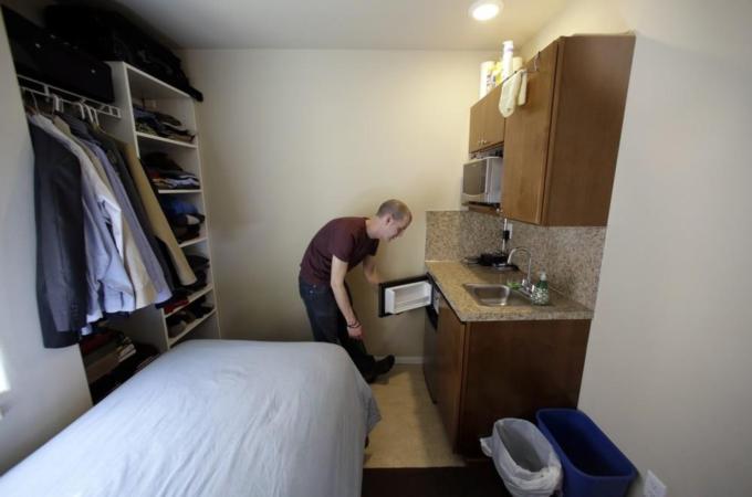The flat is similar to the micro-units that will be built by New York City Mayor Michael Bloomberg’s administration on Manhattan’s Lower East Side, to relieve a saturated housing market with prices many people are unable to afford.