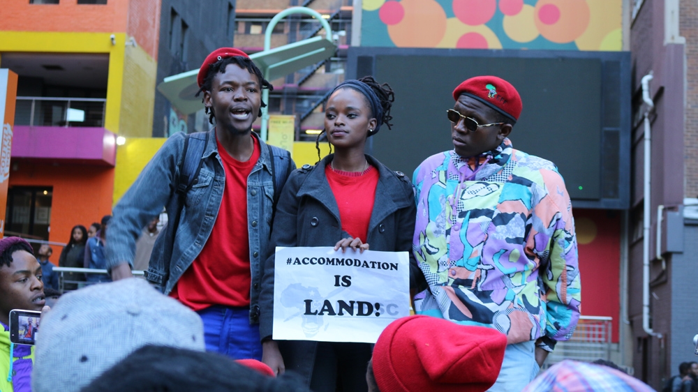 “Accommodation is land!” declared the protest signs, linking the high fees many say are keeping young black students from university with the dispossession of black people under Apartheid. In the run-up to the election, EFF leader Julius Malema asked citizens to “stop voting for T-shirts and food parcels” and promised to put land and resources back in the hands of black South Africans.