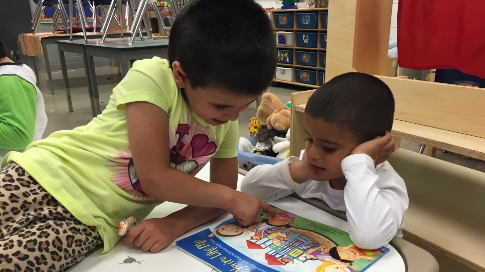 After pointing out bears in a storybook to her little brother in their classroom, Cemile shyly opens up about her experience at school so far.