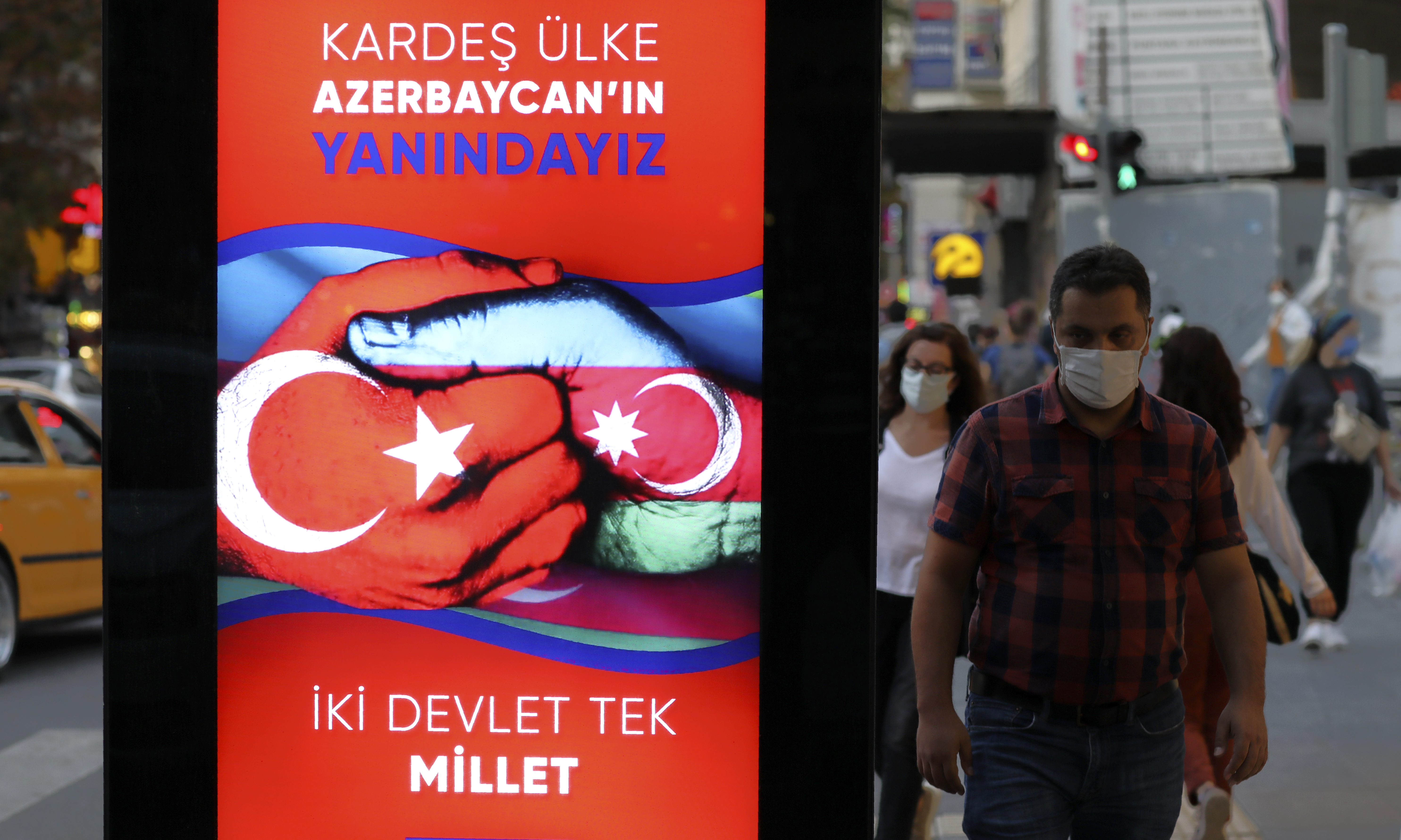 Digital billboards in Baku have broadcast high-resolution imagery of missiles striking Armenian tanks and other military hardware, as well as groups of soldiers caught in the open.