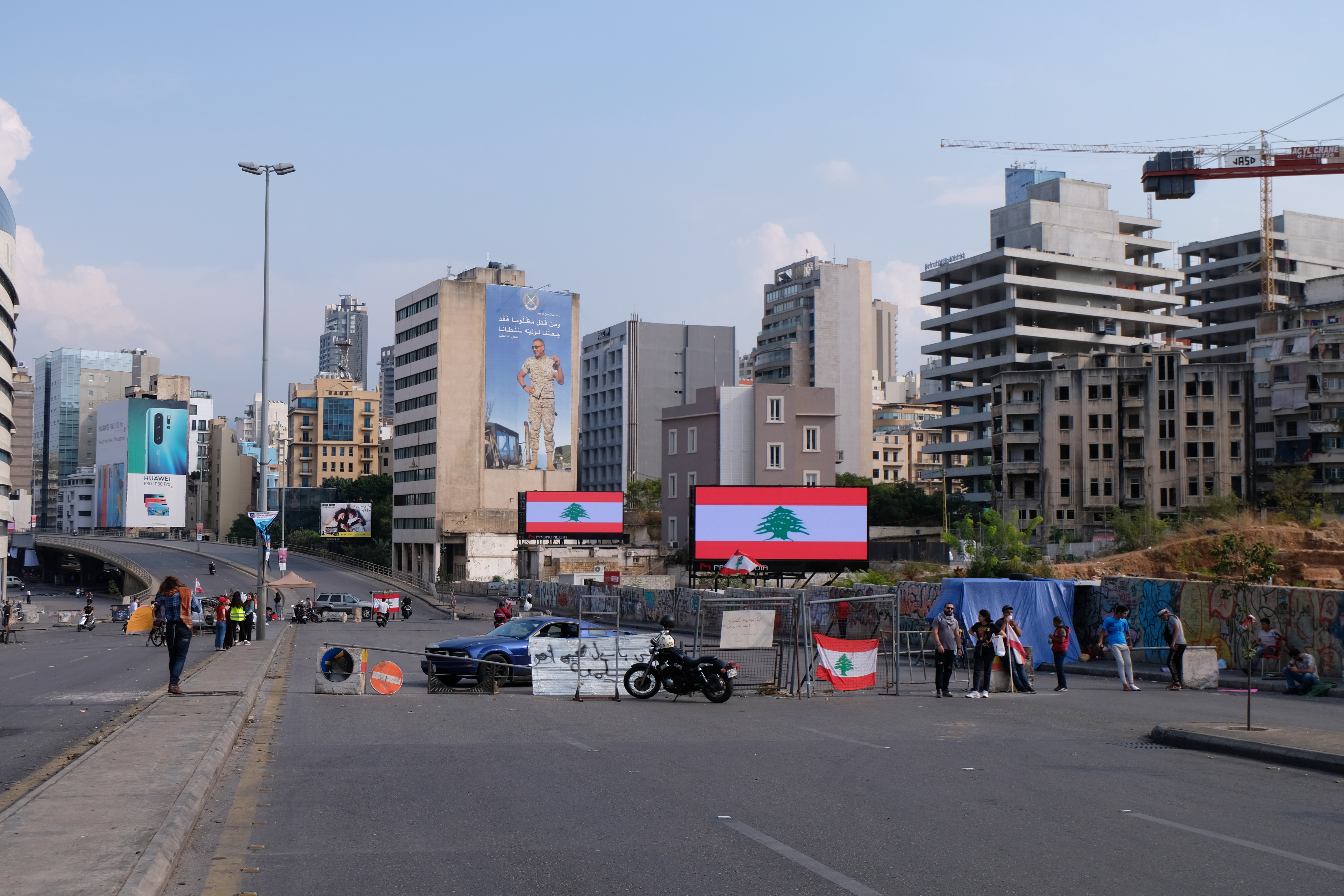 “Road closed for maintenance of the nation,” one sign on a Beirut thoroughfare read.