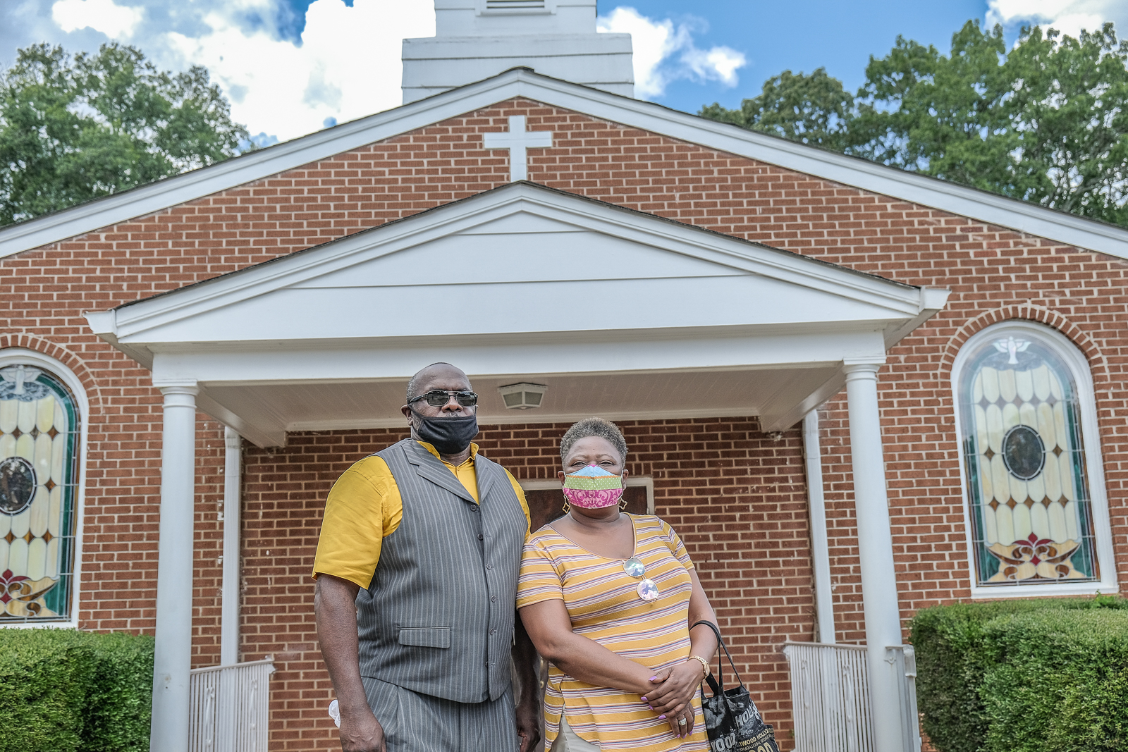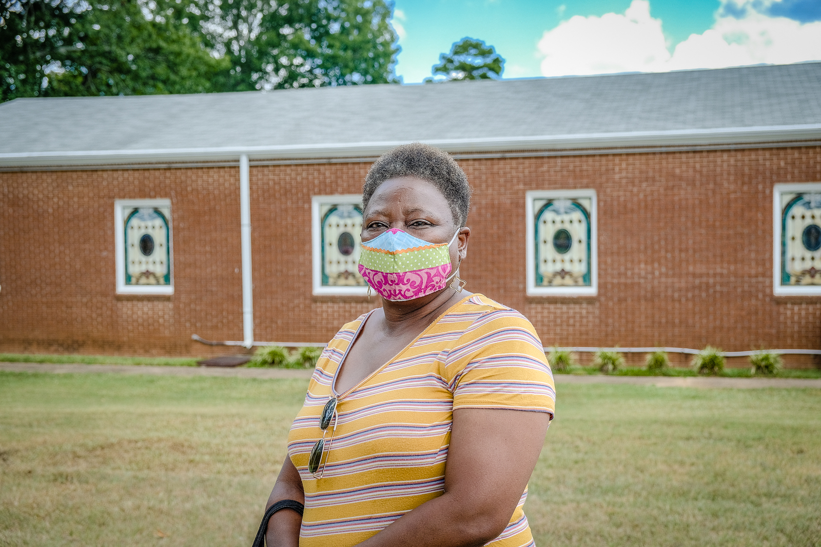 Beyond the neatly-aligned homes are miles of vibrant green fields, once used as cotton plantations, and beyond those, down a short dirt road, is a small cemetery, with an old, white church at its entrance.