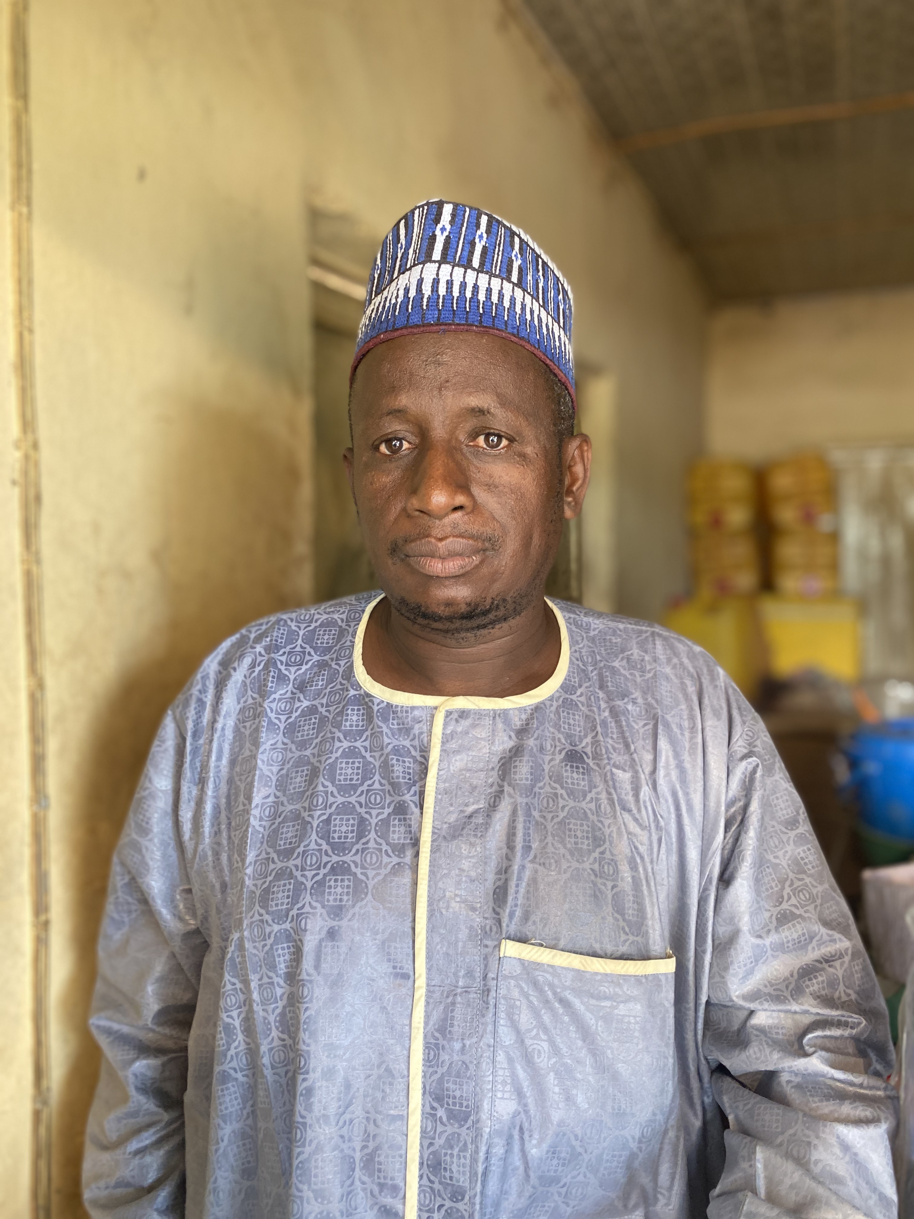 At a minimarket on the Abuja-Kaduna expressway, a 20-minute walk from Rijana station, we meet 45-year-old shopkeeper Ali Abubakar, who is dressed in a blue kaftan with a matching cap. He is selling soft drinks, foodstuff and household items in his store, which can hold only three people at a time.