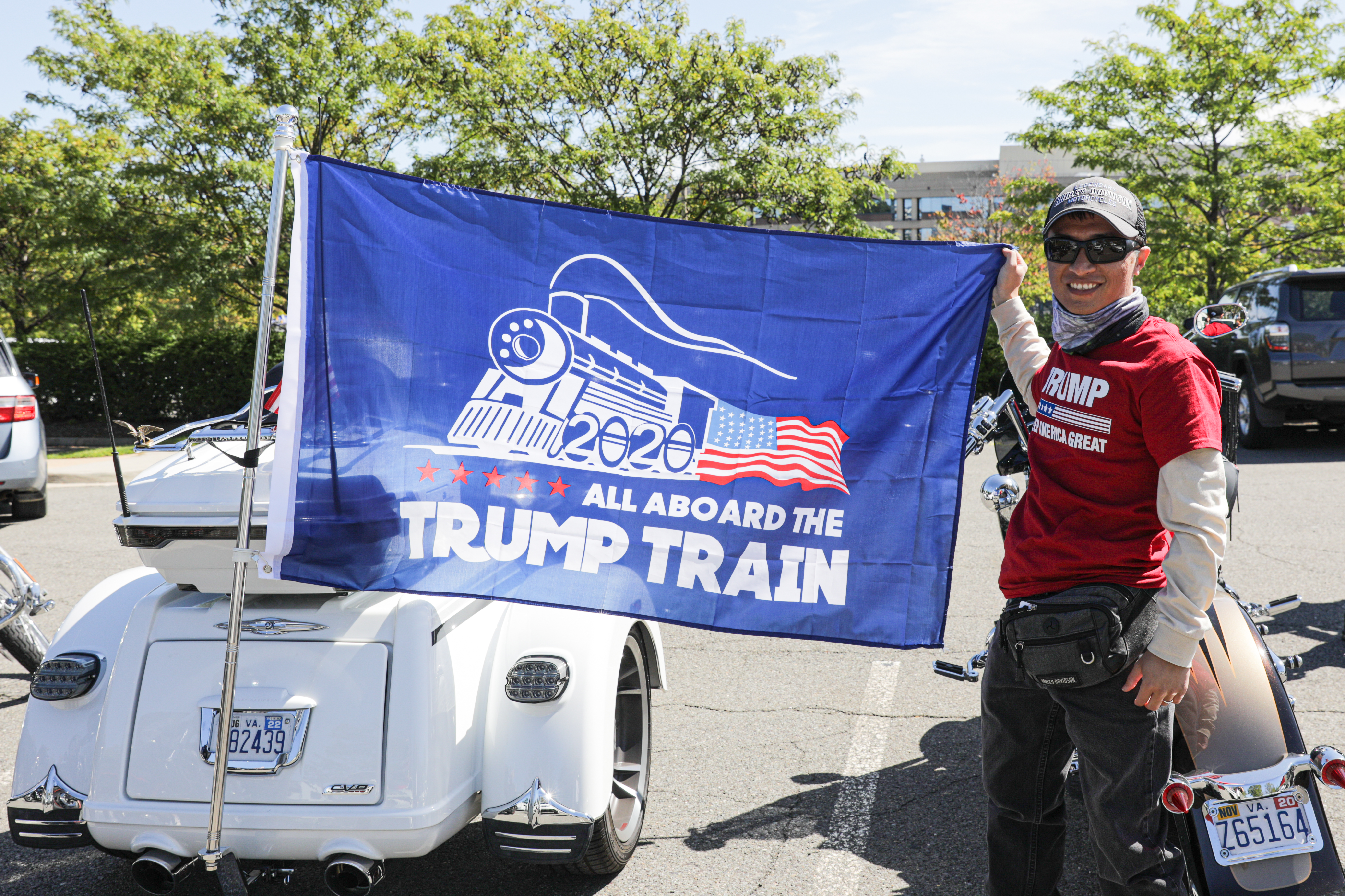 “He brings us another dream, that you can be a president; maybe my kids can be president, too. We love this country, we came here with empty hands but now that has changed, we have opportunities,” he says with a smile while sitting on his white Harley-Davidson motorcycle in a parking lot at the Fairfax County Government Center, the last stop of a “Trump Train” parade and rally that took place earlier in the day.