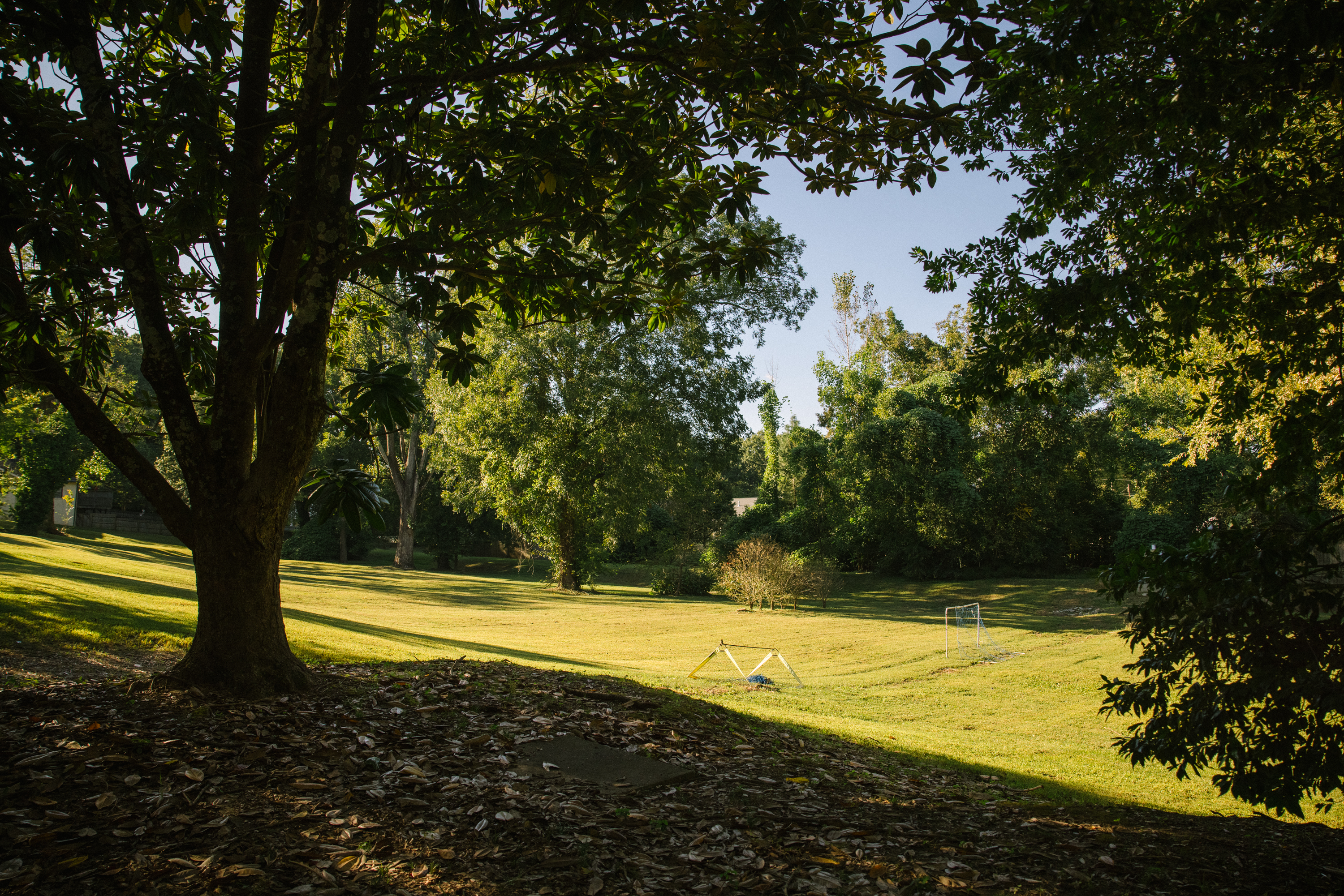 The homes on the contested block in Peoplestown look insignificant, almost powerless, compared to the vast green area surrounding them, which sits calmly, waiting for the remaining residents to be expelled so it can finally swallow their homes.