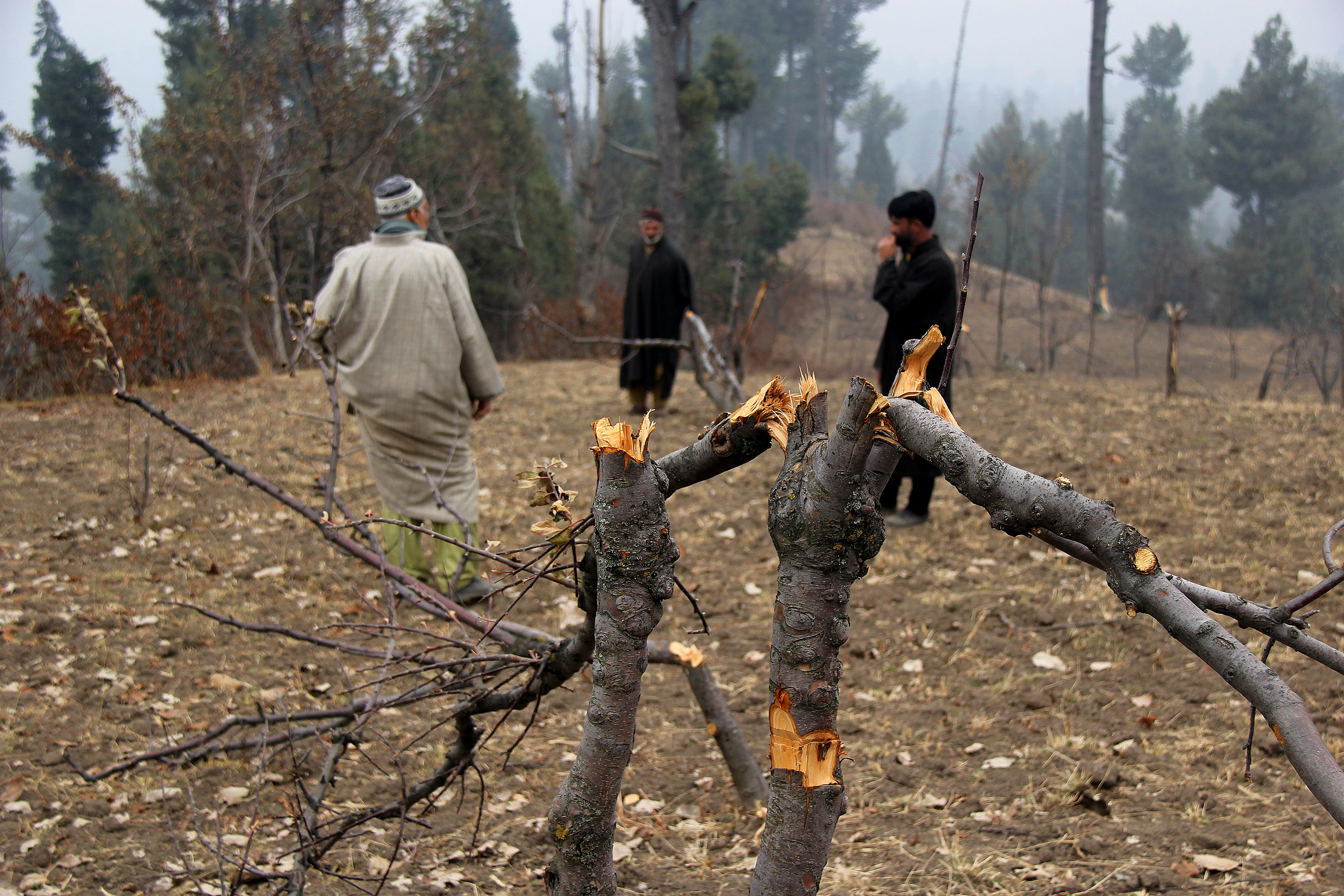Manzoor Ahmad, another resident of Kanidajan, said the villagers watched in fear when the government officials came to remove the trees on December 4.