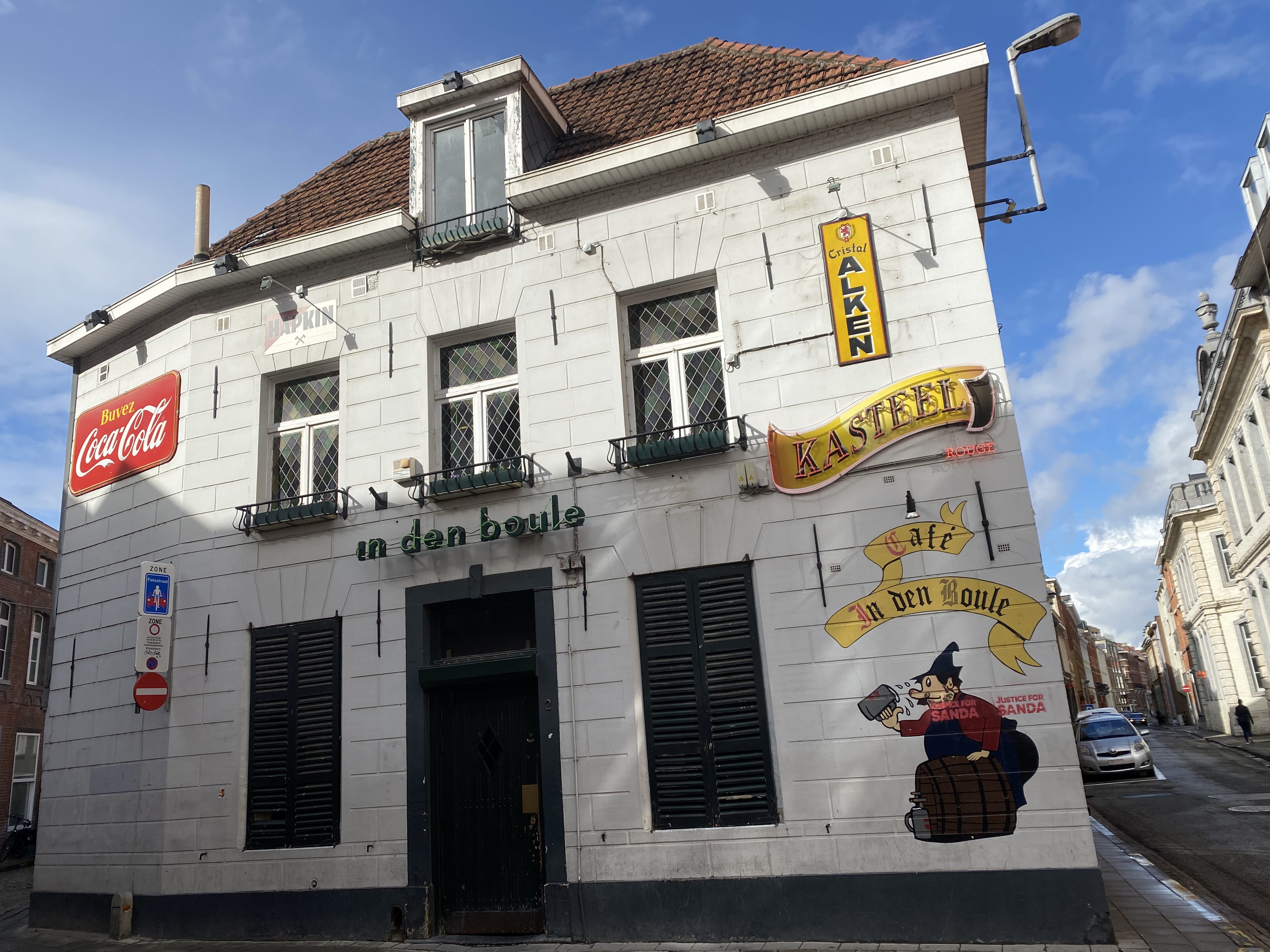 On a Friday afternoon in Leuven in late September last year it is dark and rainy. Every so often a student’s weekend suitcase clatters loudly over the cobblestones. Halloween paraphernalia sits on display in a discount homewares chain store in the city centre. A short stroll away, is the shuttered rustic pub that Reuzegom frequented. Stencilled on its white walls in red is, “Justice for Sanda”.