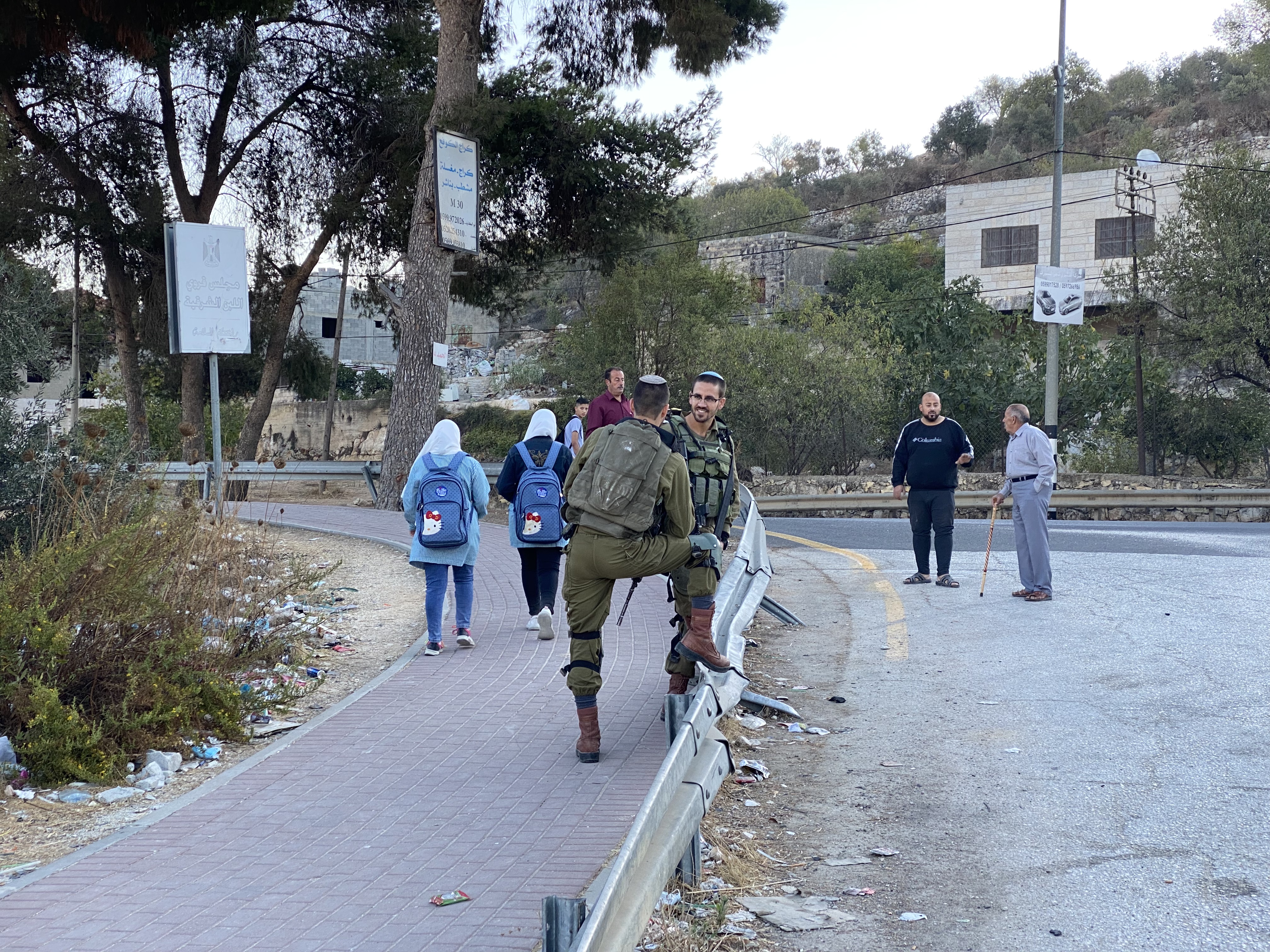 In the agricultural area ahead, groups of schoolboys took an alternative route through village fields to get home as Israeli soldiers patrolled the main road.