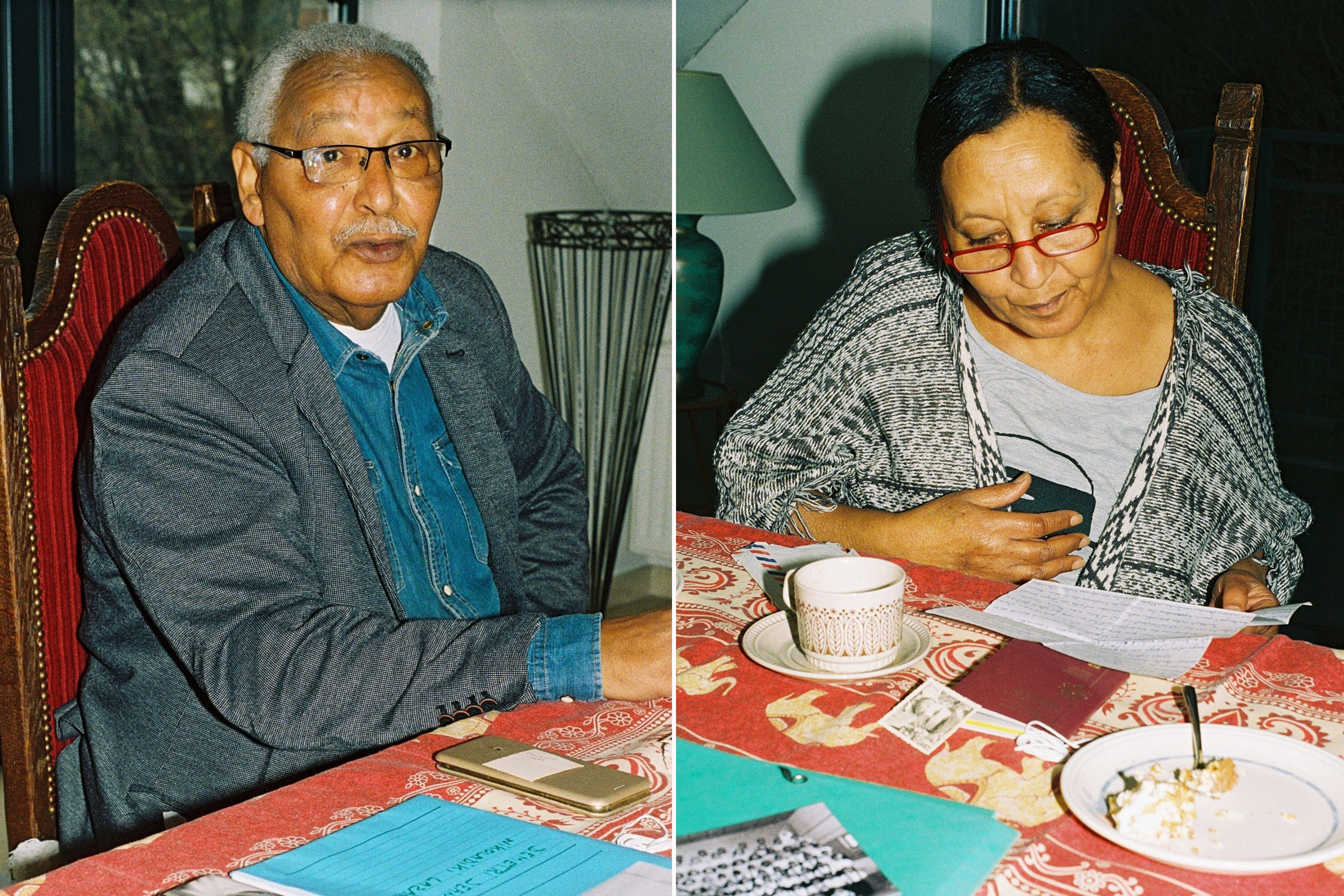 Evariste Nikolakis, 74, sits at his sister’s dining table, in the municipality of Ottignies in Belgium’s French-speaking region of Wallonia, the bare branches of winter trees visible through the glass sliding doors behind him. A neat stack of black and white photos and green folders containing documents from his and his sister’s childhood sit on the table. His sister Léna Nikoladiki, 72, a petite woman with high cheekbones and hair pulled into a low twist, moves around taking papers of note out of their folder.