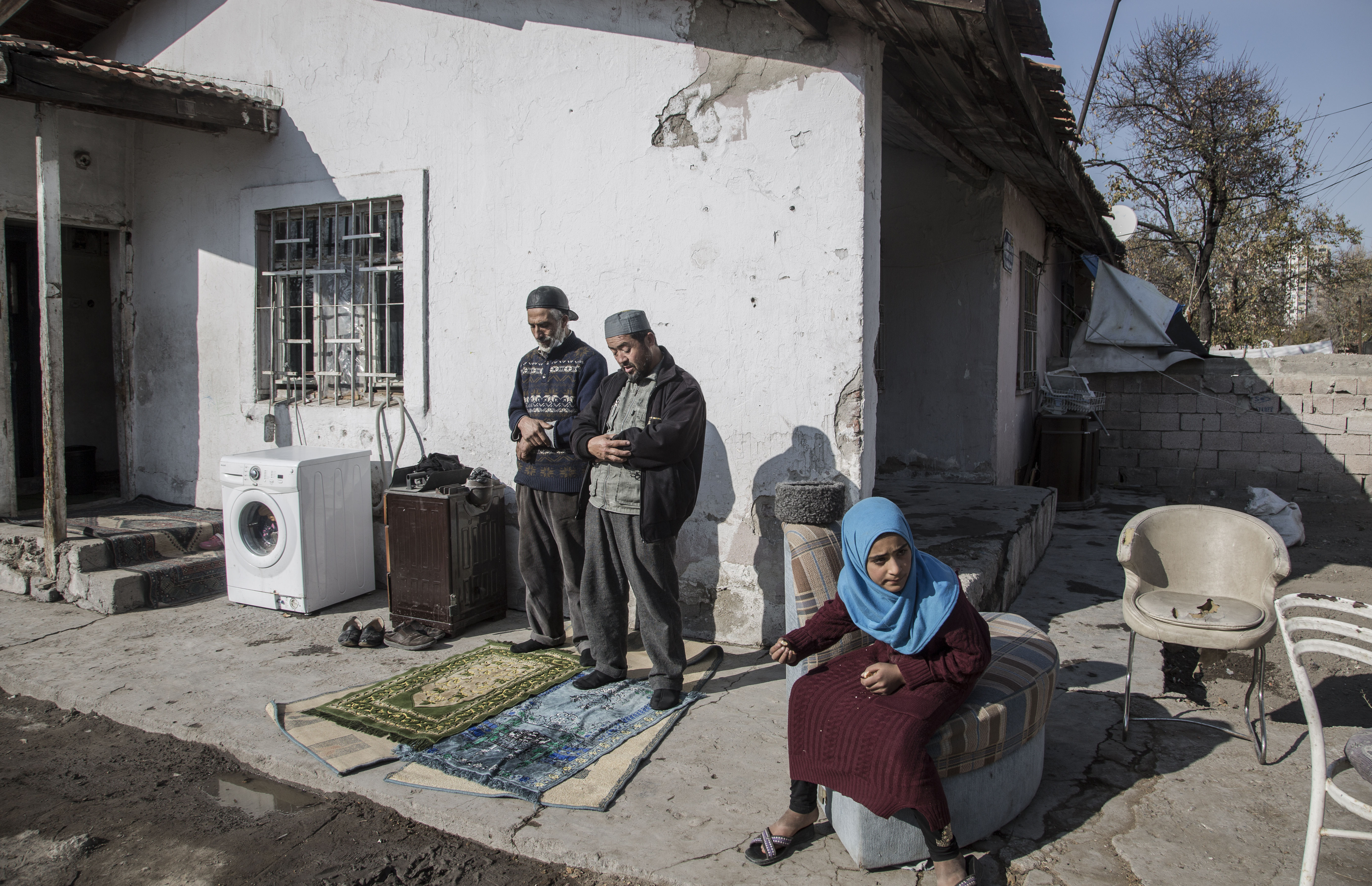 The children – who have learned Turkish at the local school – act as translators, since their elders do not share a common language. The Syrian families speak Arabic, while the Uighurs speak the Uighur language. Most of the Uighur adults have mastered Turkish as it is close to their own language. But many of the Syrians have struggled and know only a few words.