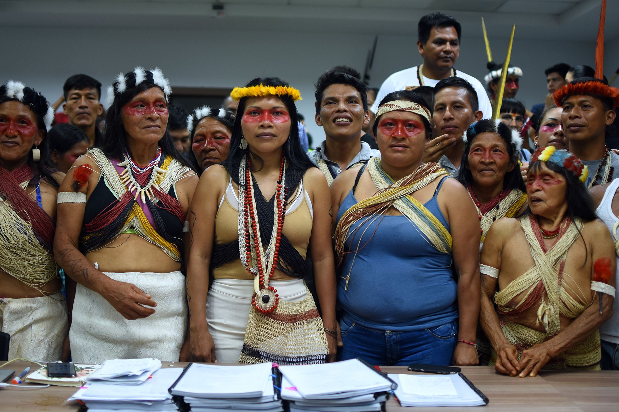“That’s where the strength for my leadership grew, where I saw a crystal-clear picture,” says Nemonte, looking up and pausing as she recalls that visit. “If we do not organise ourselves and work together it will affect us all the same. Water will be dirty, oil companies around. The houses I saw had no good wood, they [people in Lago Agrio] used to have a beautiful place. They cannot harvest their own food; they eat processed foods. If we do not fight, if we do not protect our territory, it will be destroyed.”
