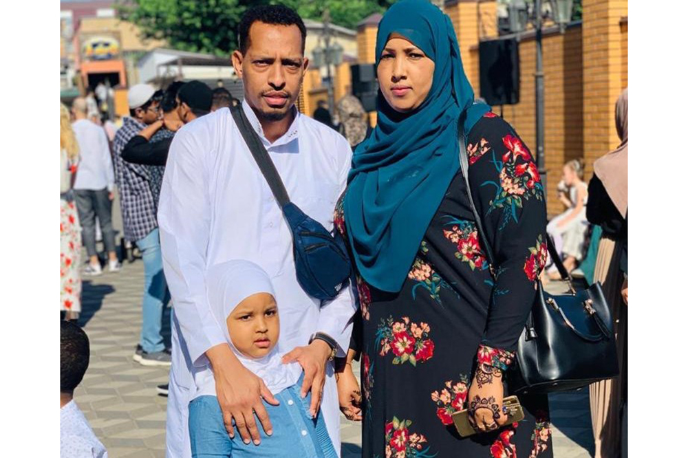 Mohamud Abdi, a Somali refugee in Ukraine who has since moved to Germany, pictured with wife Zamzam and seven-year-old daughter Ruweyda [Courtesy: Mohamud Abdi]
