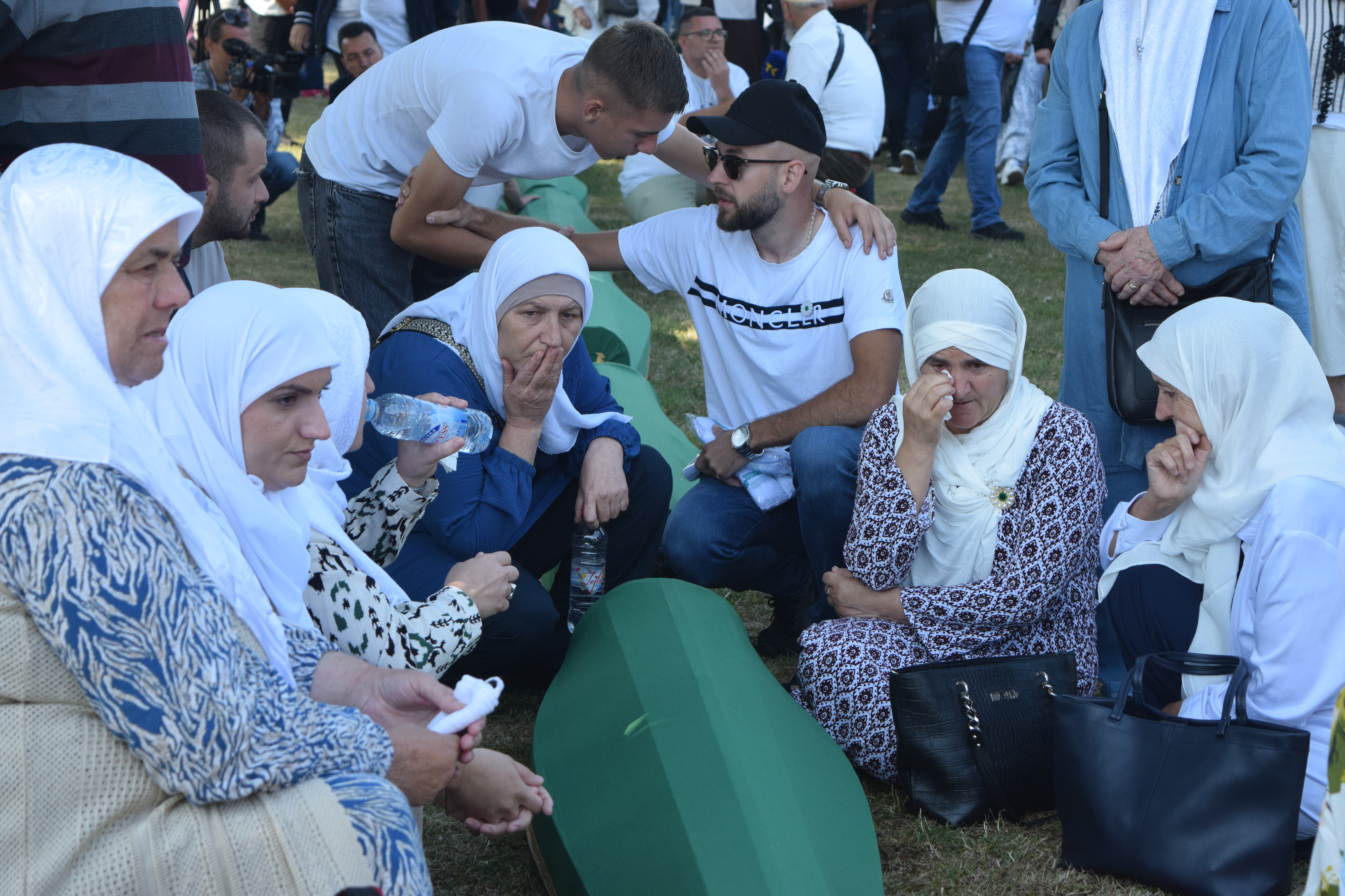 Thousands of people attended the commemoration for victims of the genocide on Friday, which began with a congregational Islamic prayer – men, women and children prostrating in unison among the rows of gravestones.