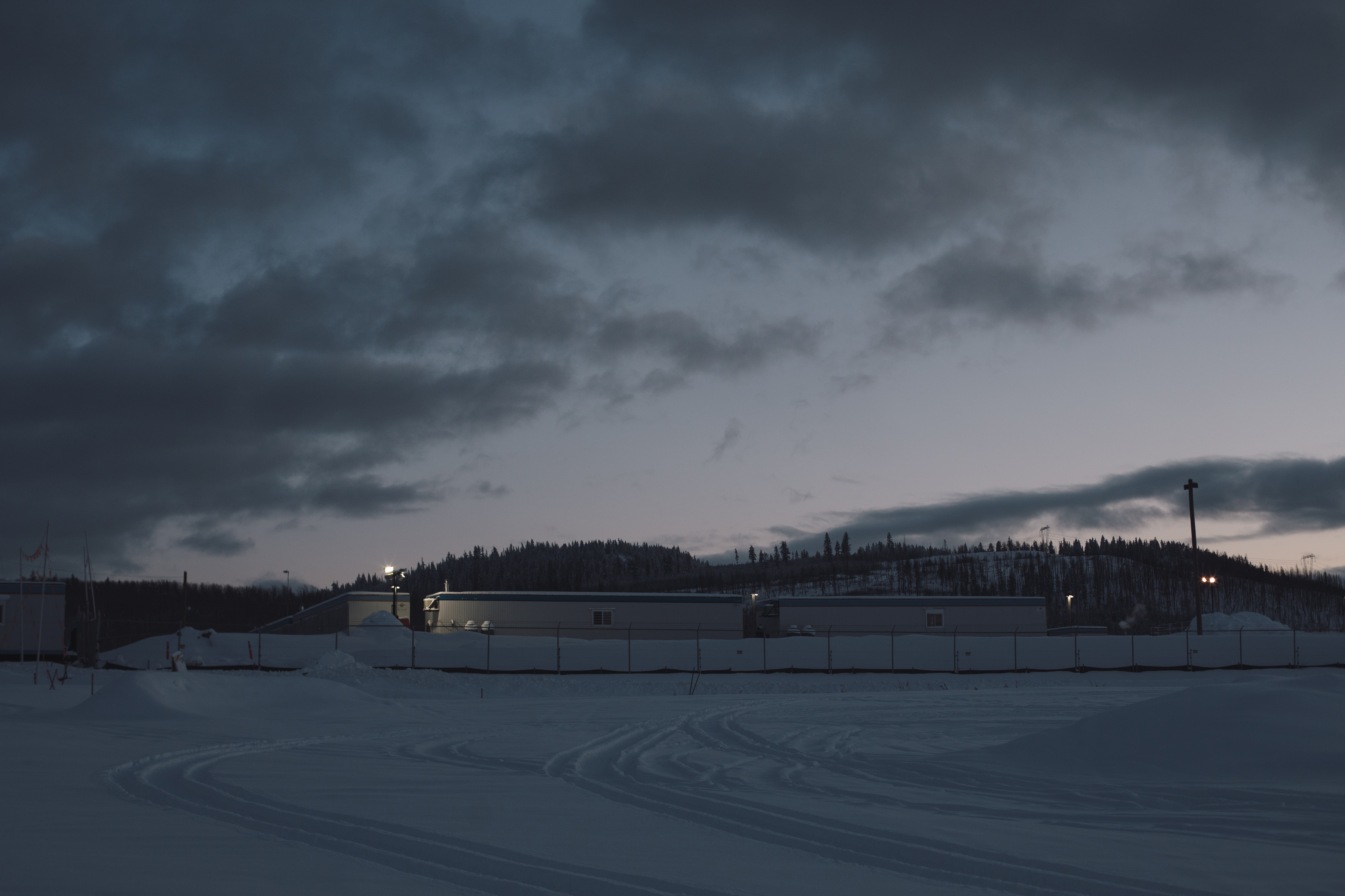 A couple of hundred kilometres east, smoke rises from the roofs of dozens of rows of white and blue modular structures. This is a labour camp - or ‘man camp’ as they are commonly referred to - housing workers building the CGL pipeline.