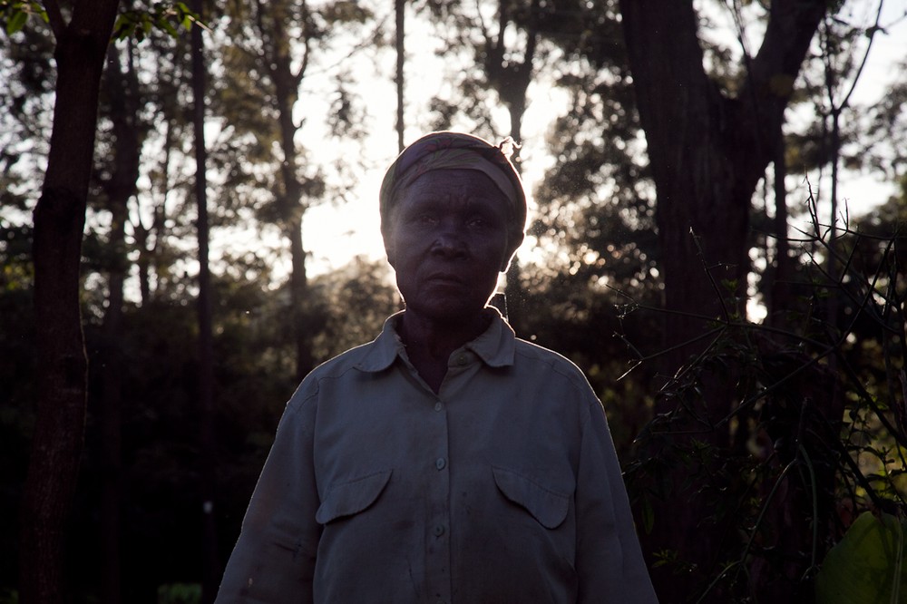 Naomi Kimweli stands in her kitchen outside the town of Katangi, Kenya. Naomi lost her unborn baby and three young children when her bus was stopped by colonial officers in 1957.