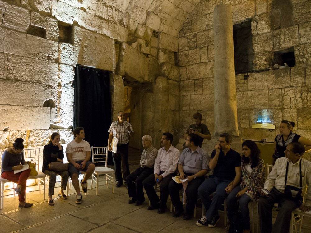 Abu Shamsie, a tour guide from the Centre for Jerusalem Studies, explains the topography of the Western Wall tunnels.