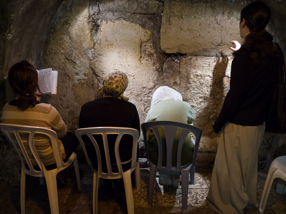 Jewish worshippers pray in the tunnel at the closest physical point to the Holy of Holies, a sacred room in the ancient temple that once housed the Ark of the Covenant.