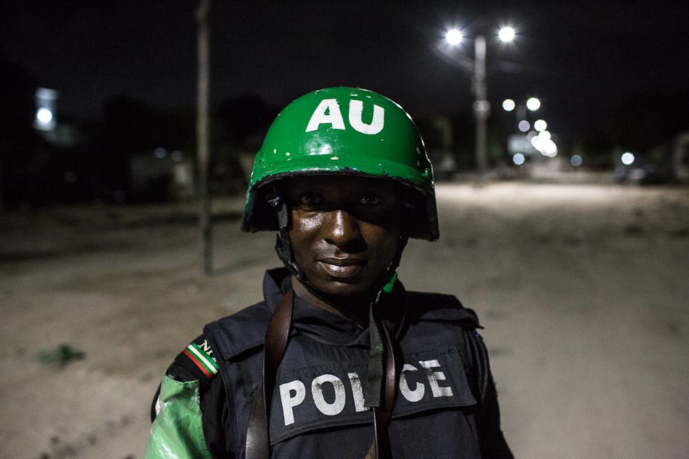 Mogadishu, Somalia – In 2011 African Union Mission in Somalia (AMISOM) forces largely pushed out the armed group al-Shabab from Somalia’s capital city of Mogadishu. Since then, police units from Nigeria and Uganda have been attempting to train and equip the fledgling Somali Police Force (SPF) in securing the capital city. Part of this effort has been conducting nightly joint patrols with the SPF. These patrols, and the recent introduction of solar powered lights onto the city’s main streets, have helped allow businesses to reopen, enabling civilians to move more freely after dark.