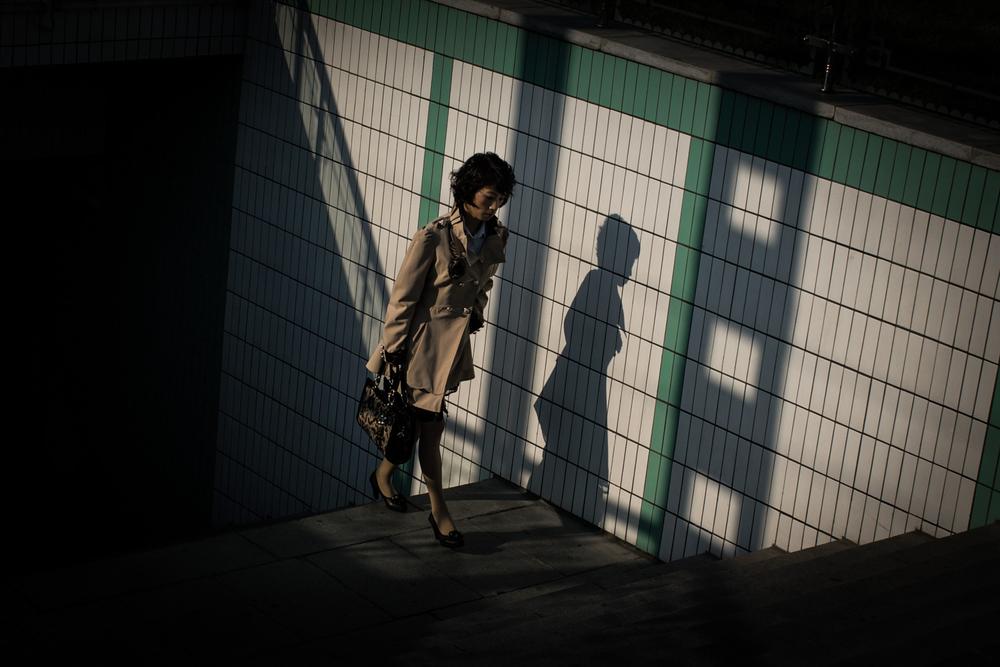 A silent commuting crowd slowly emerges. Men and women dressed in dark suites descend upon the central district that houses government ministries and offices.