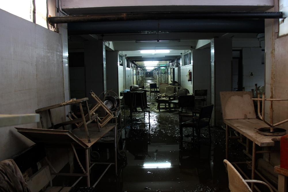 Water has now receded from the hospital buildings but stinky mud-coated walls, scattered beds and furniture, swampy corridors and heaps of trash inside, make them look no less than ghost houses. Hospital authorities are now accepting help from the Fire and Emergency Service department for dewatering and sanitation.