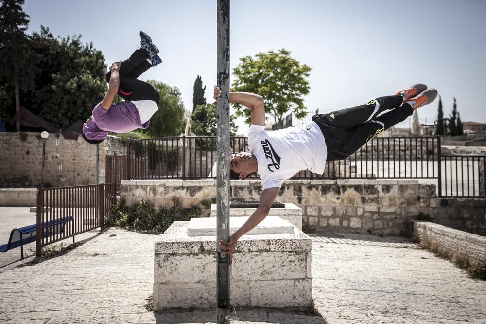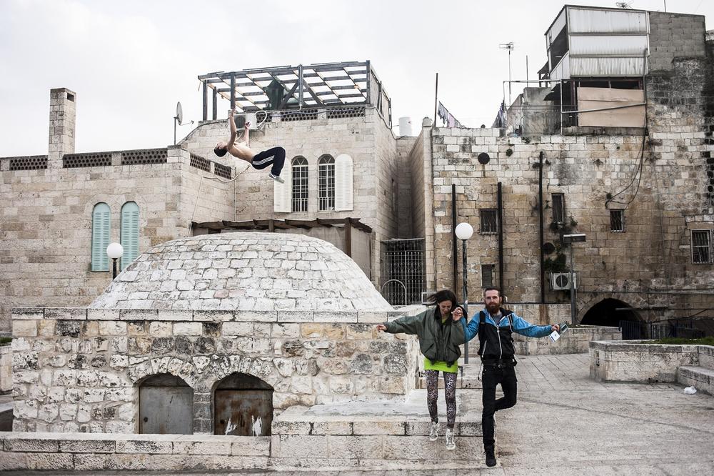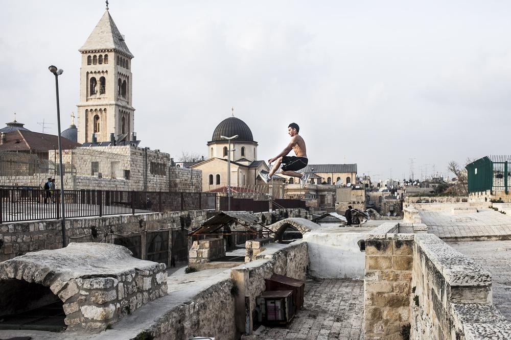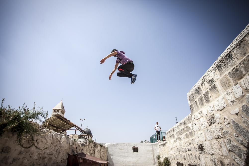 On a rooftop overlooking Jerusalem one recent day, Sami methodically planned his movements before making a jump. He gave one final look towards his friend, who stood back and watched the young man as he made the leap – an impressive flight of several seconds over the heads of onlookers seven metres below.