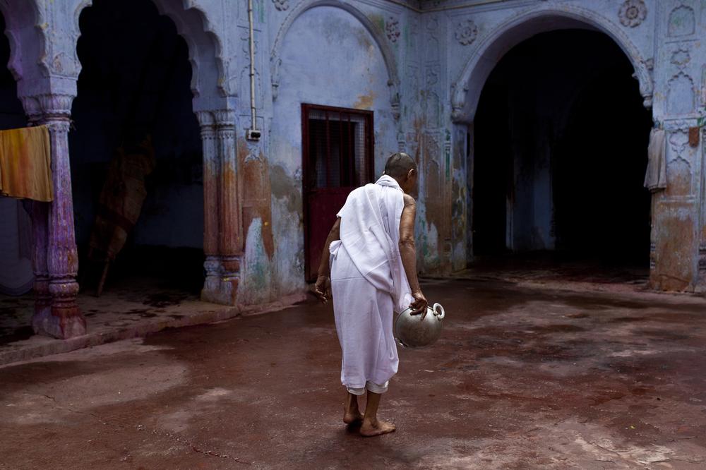 Living communally in ashram temples, they fill their time praying and chanting to lord Krishna in exchange for small amounts of rice, water and a bed. They also beg on the streets to eke out a living.