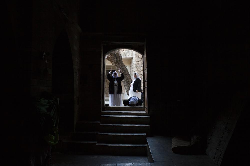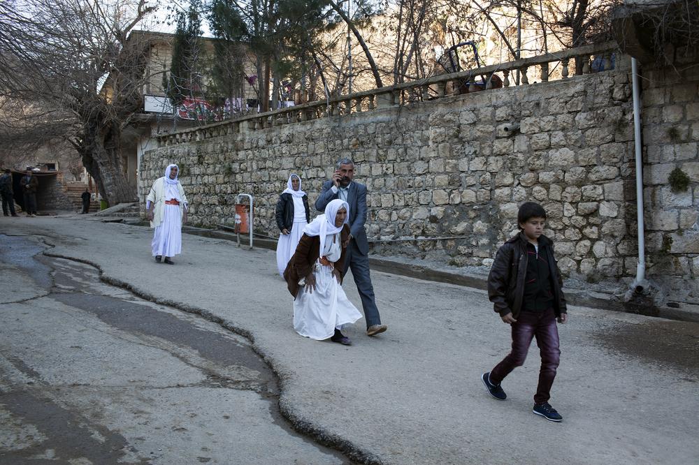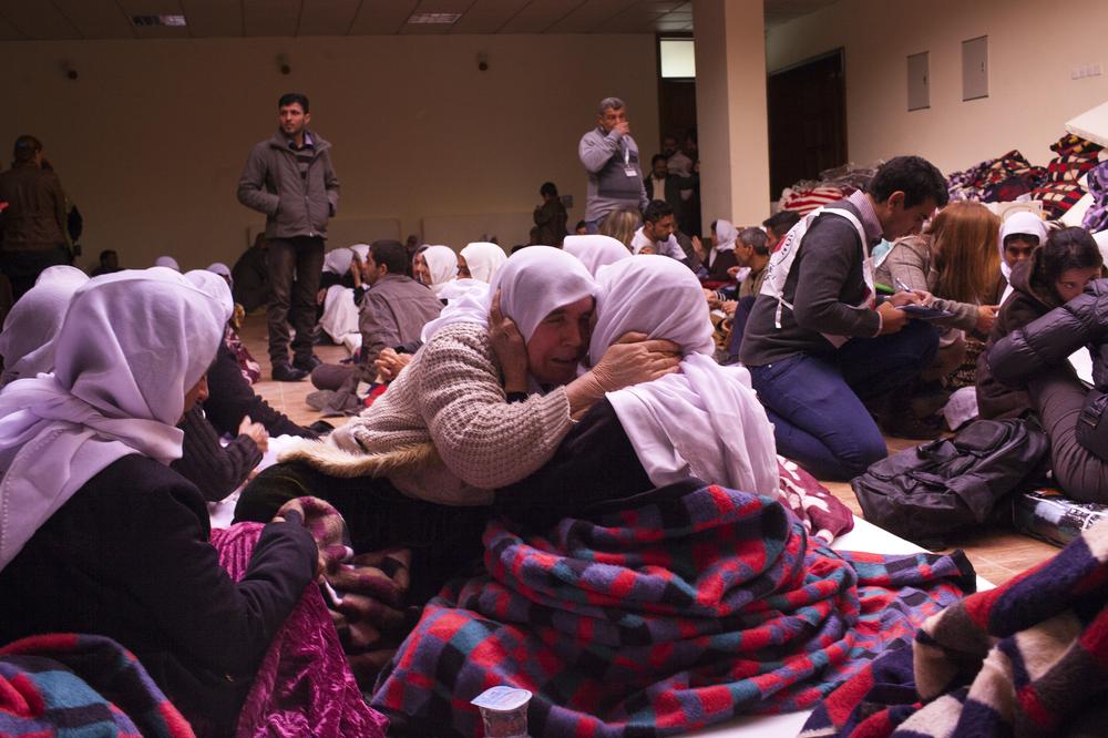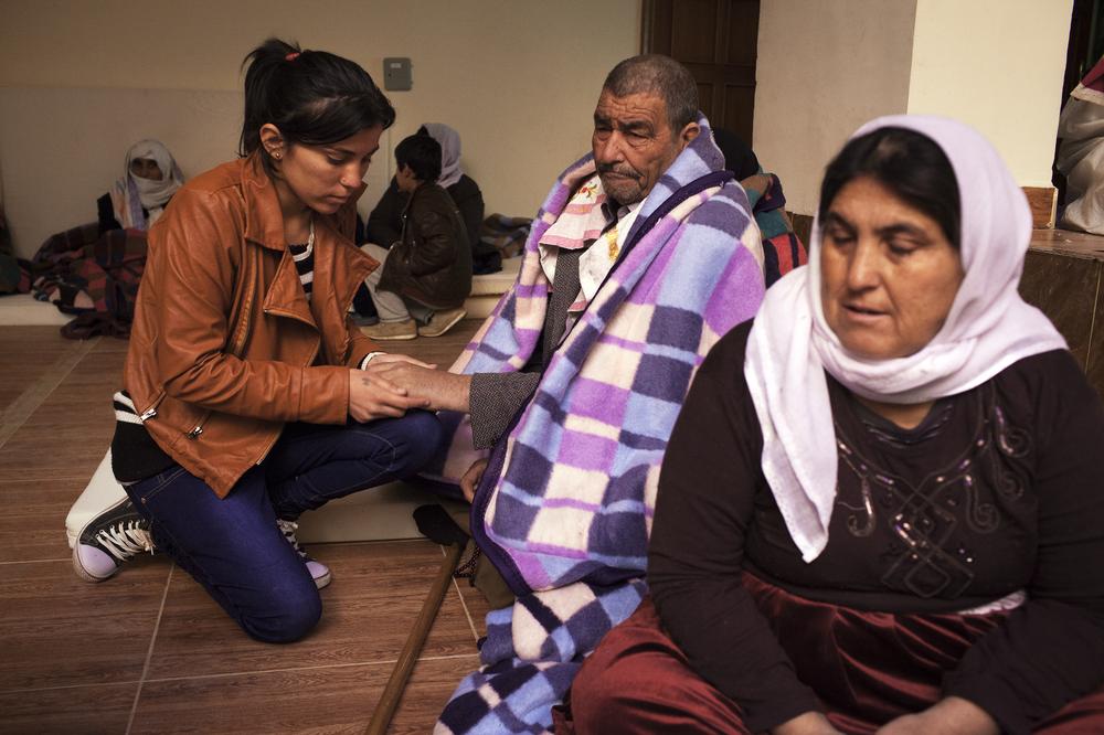 Lalish village, Iraq – In the holy centre of Lalish in northern Iraq, hundreds of sick, elderly and weak Yazidis gather, kissing the hand of Sheikh Hussein as he welcomes them home after their ordeal at the hands of the Islamic State of Iraq and the Levant (ISIL). Doctors weave among the sick and injured, taking blood samples and trying to reassure them. Some believe ISIL fighters are still holding them, and lash out. One woman cannot remember her own name.