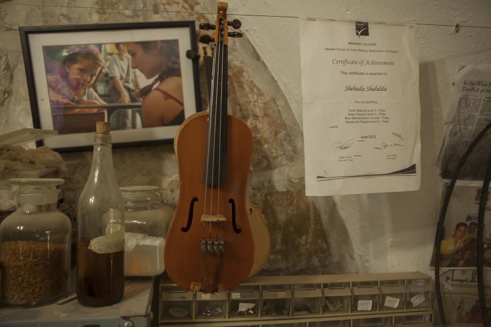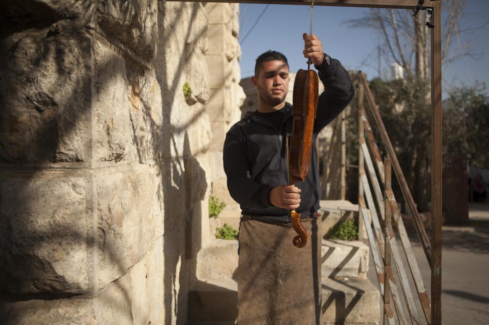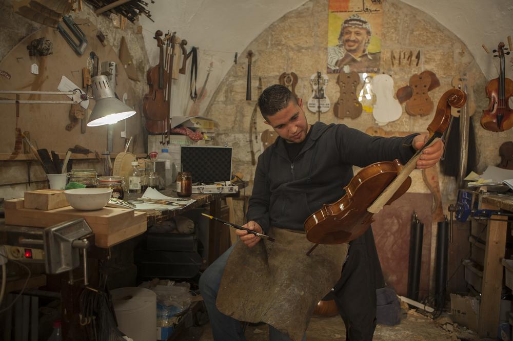 The youngest luthier in Ramallah lives next door to the shop where he makes and repairs violins.
