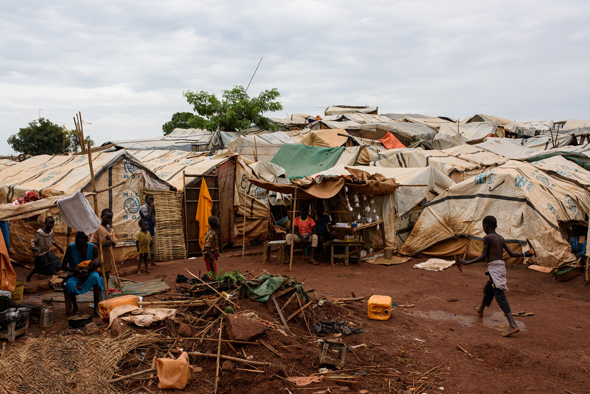 After fighting broke out in the city of Wau last year, thousands of people fled to the United Nations base seeking protection. Around 39,000 now live in the camp that has formed there, living in temporary shelters made of sticks and tarpaulins. [Phil Hatcher-Moore/UNICEF/Al Jazeera]
