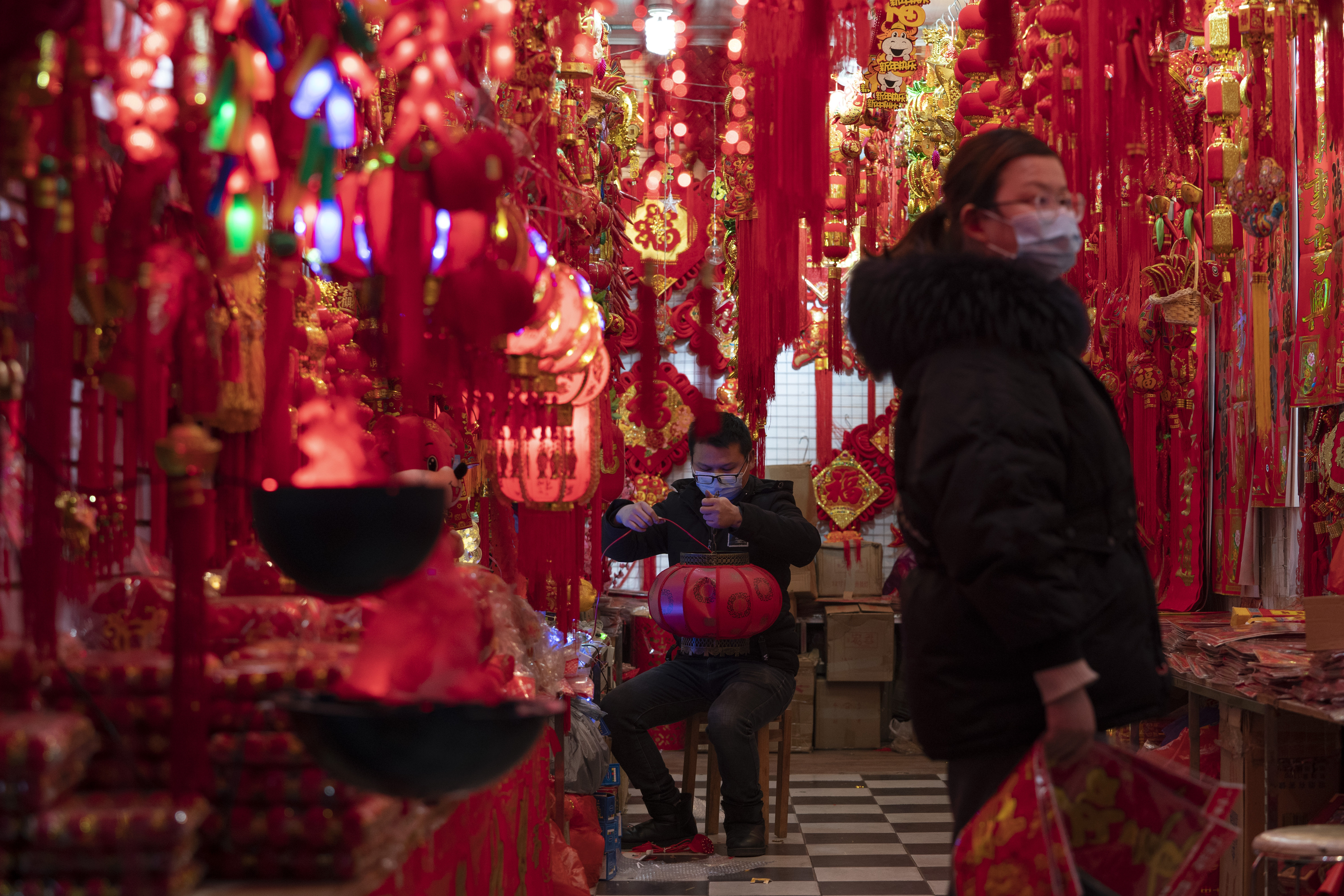 Vibrant red lanterns line an alley in Wuhan, China, expectant decorations for a holiday that traditionally sees these alleyways thronged with revellers. But customers only trickle in.