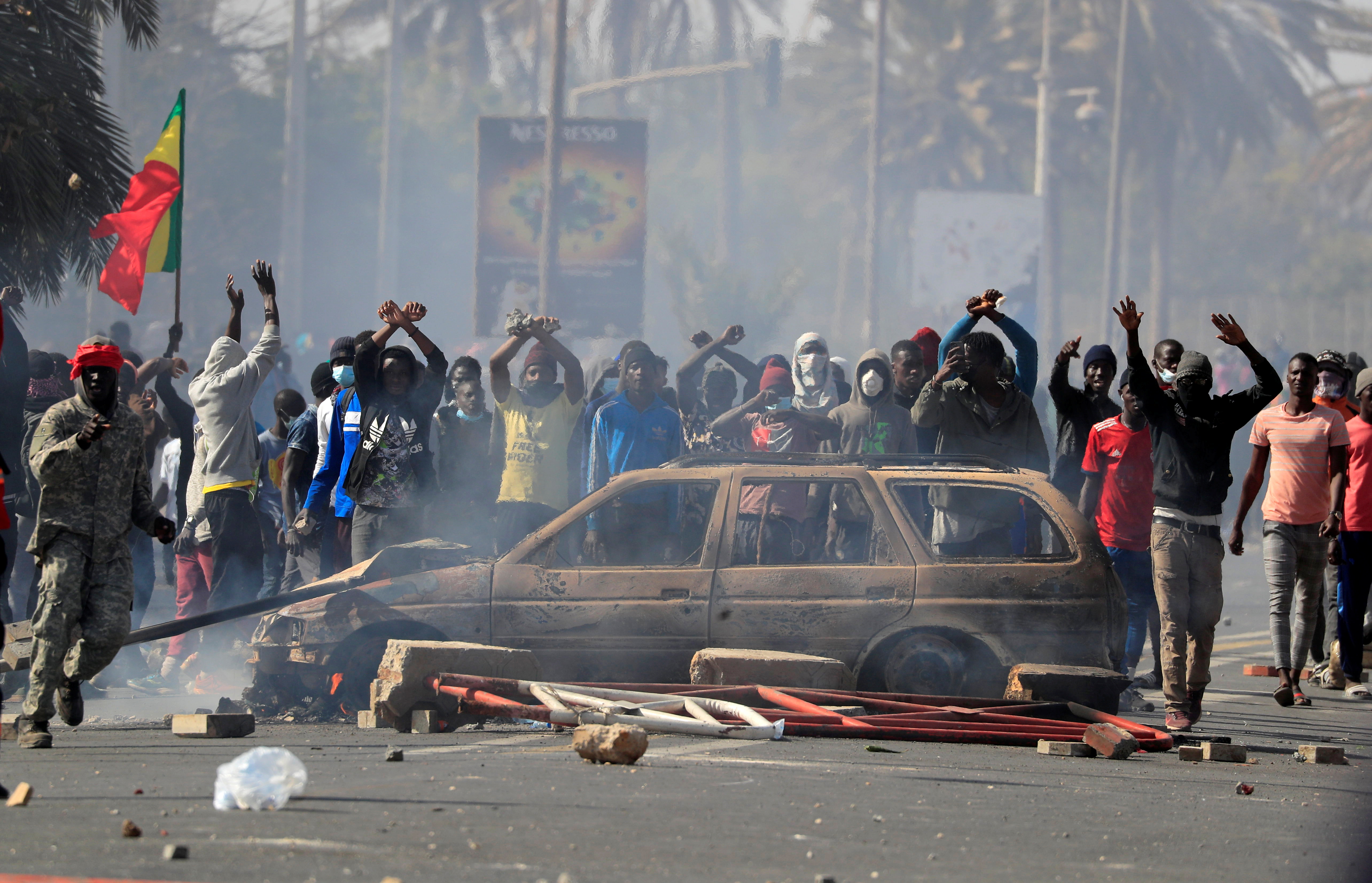 Protesters waved the Senegalese flag and torched a car during the rally while denouncing the accusation against Sonko as politically motivated.