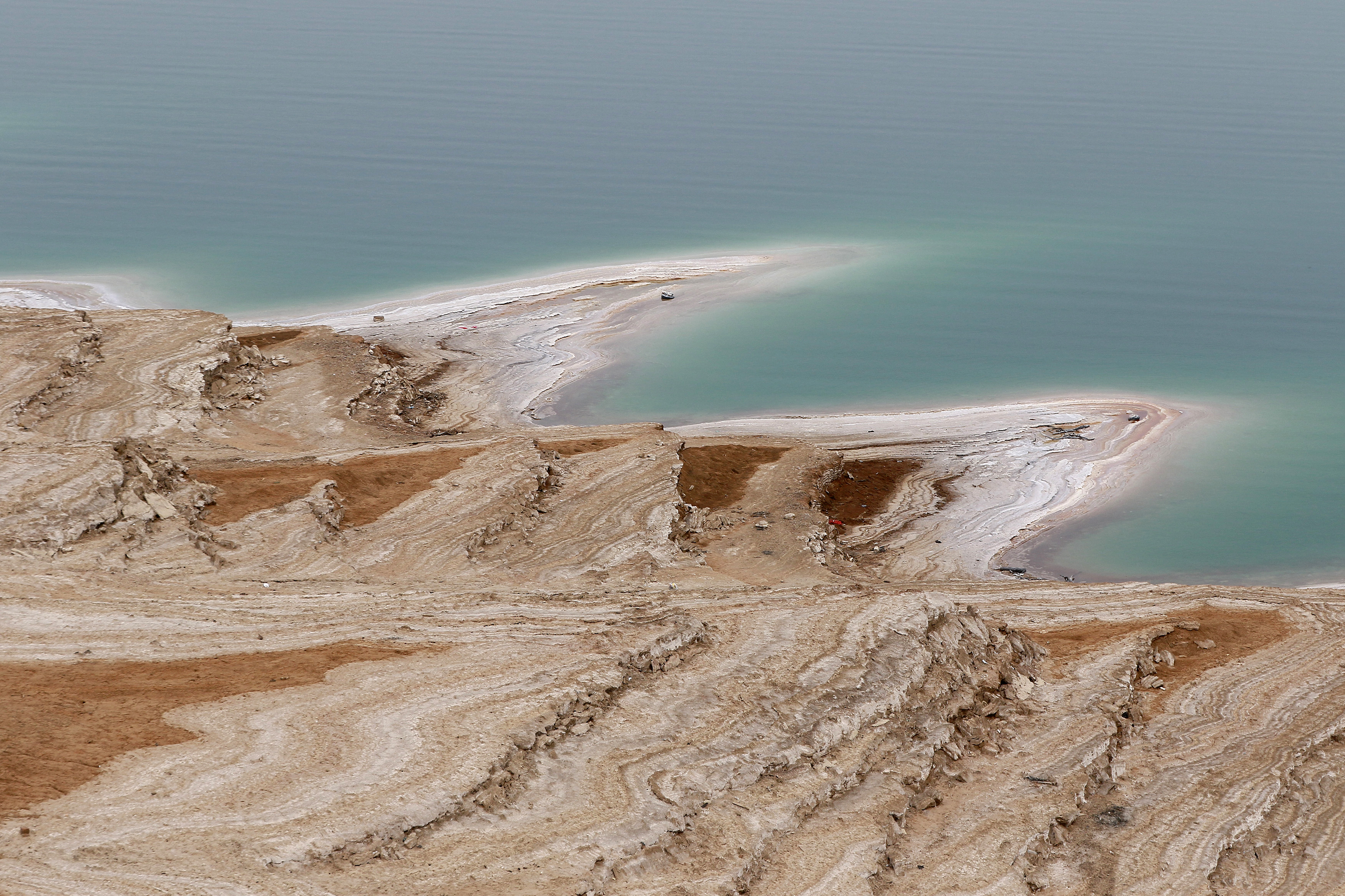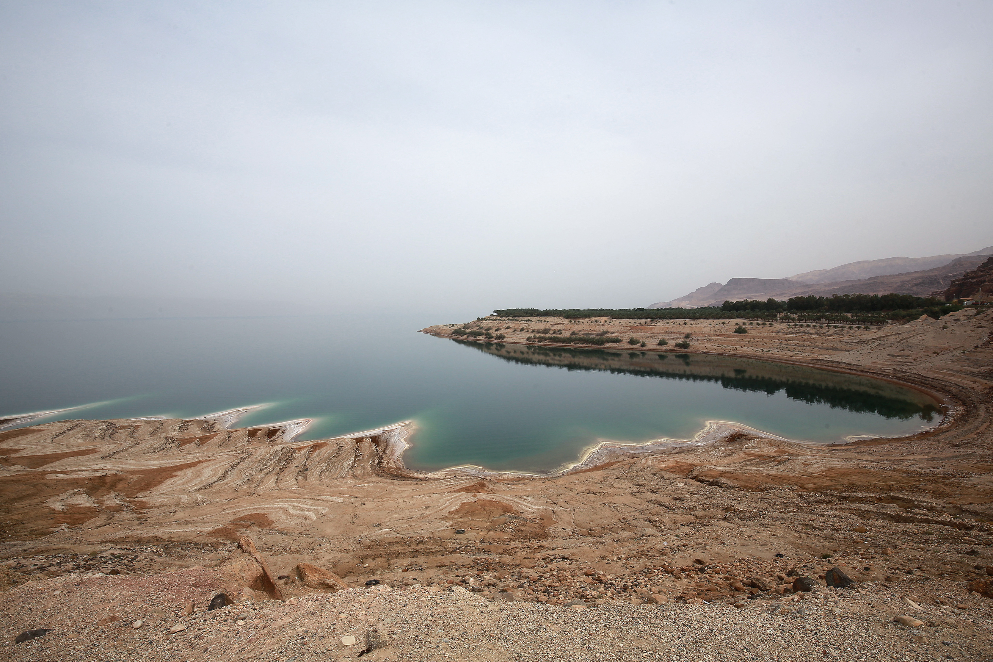 The salty waters of the nearby Dead Sea are dropping dramatically in height too.