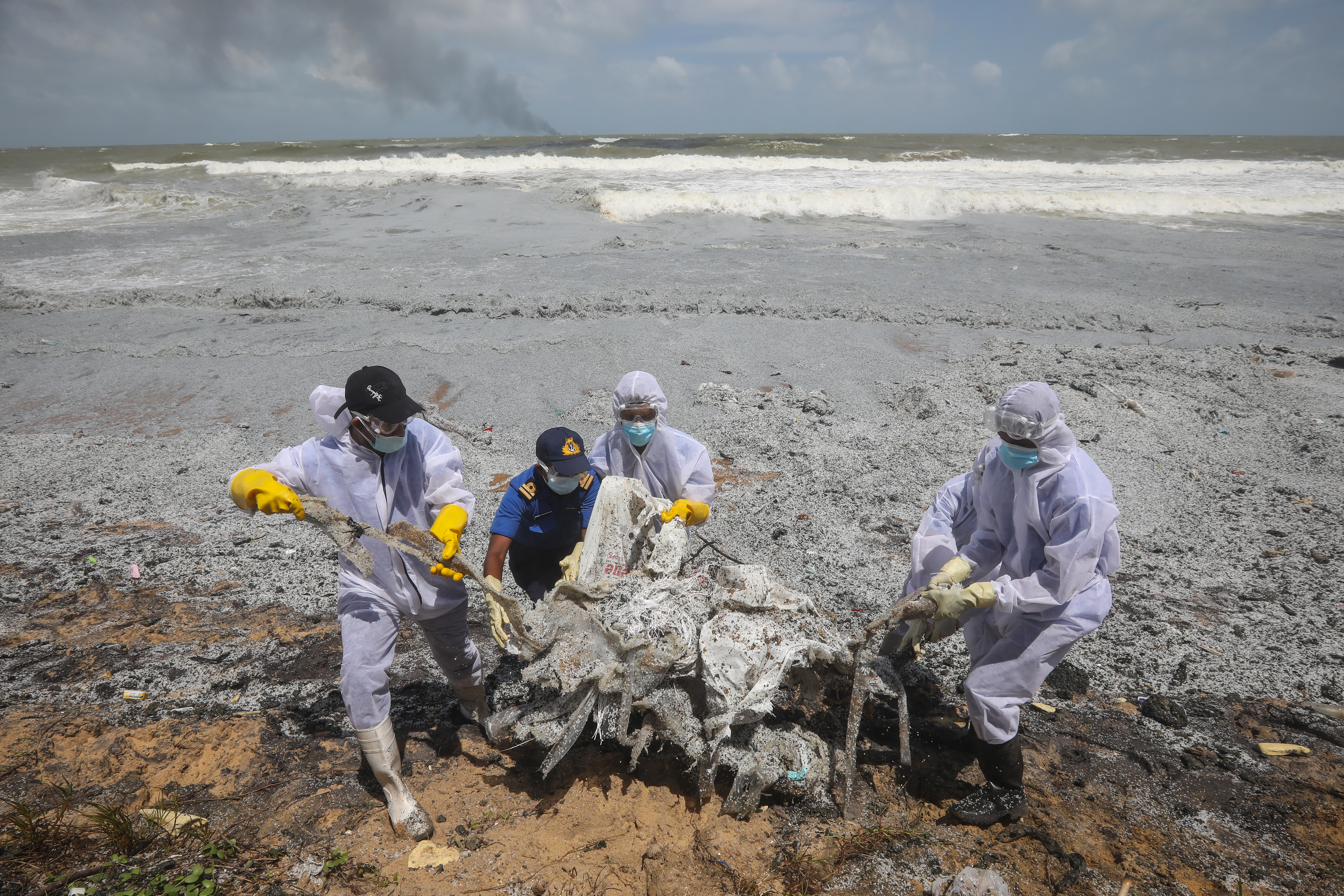 The vessel, which burned for 13 days within sight of the island’s west coast, has already caused the country’s worst maritime environmental disaster, littering the beaches with huge volumes of plastic pollution.