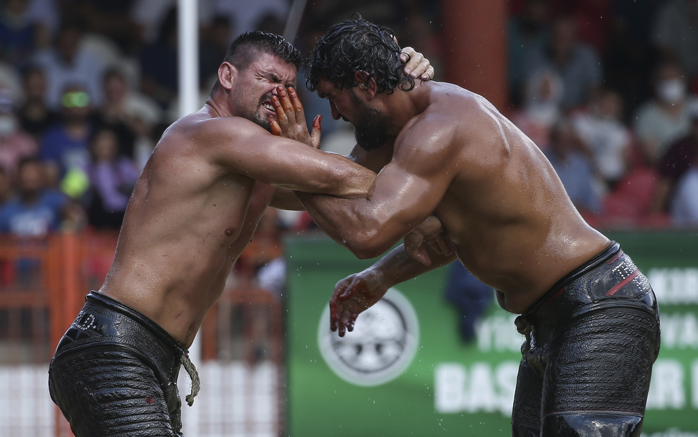 Over three days, competitors clad in leather trousers known as “‘kispet” and liberally doused in olive oil struggled to earn the title of Baspehlivani, or chief wrestler, the sport’s equivalent of world champion.
