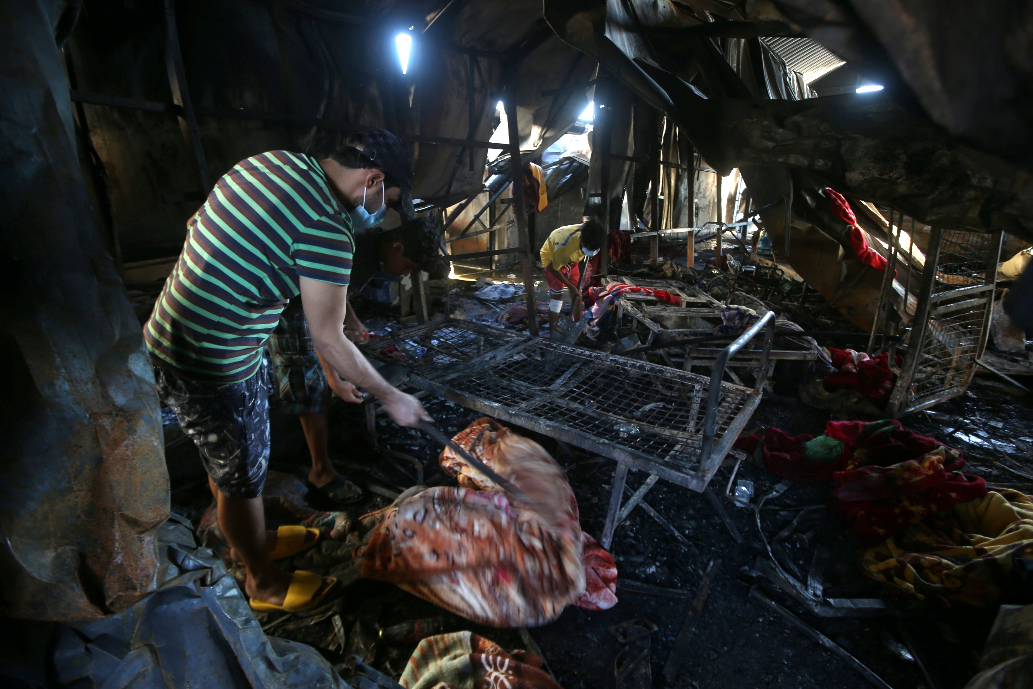 Health officials at Nasiriya said search operations at the al-Hussain coronavirus hospital were continuing after the fire was brought under control, but thick smoke was making it difficult to enter some of the burned wards.