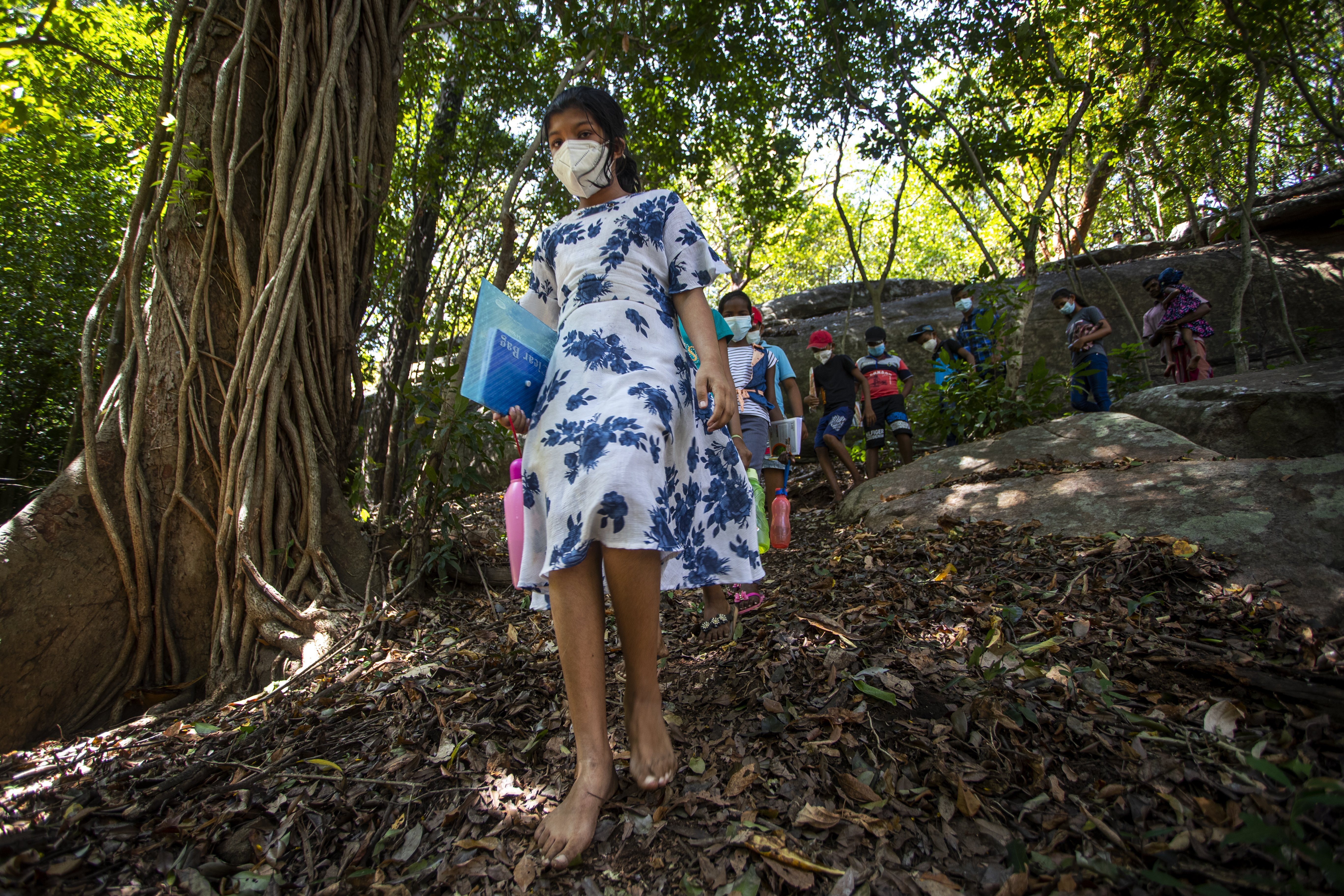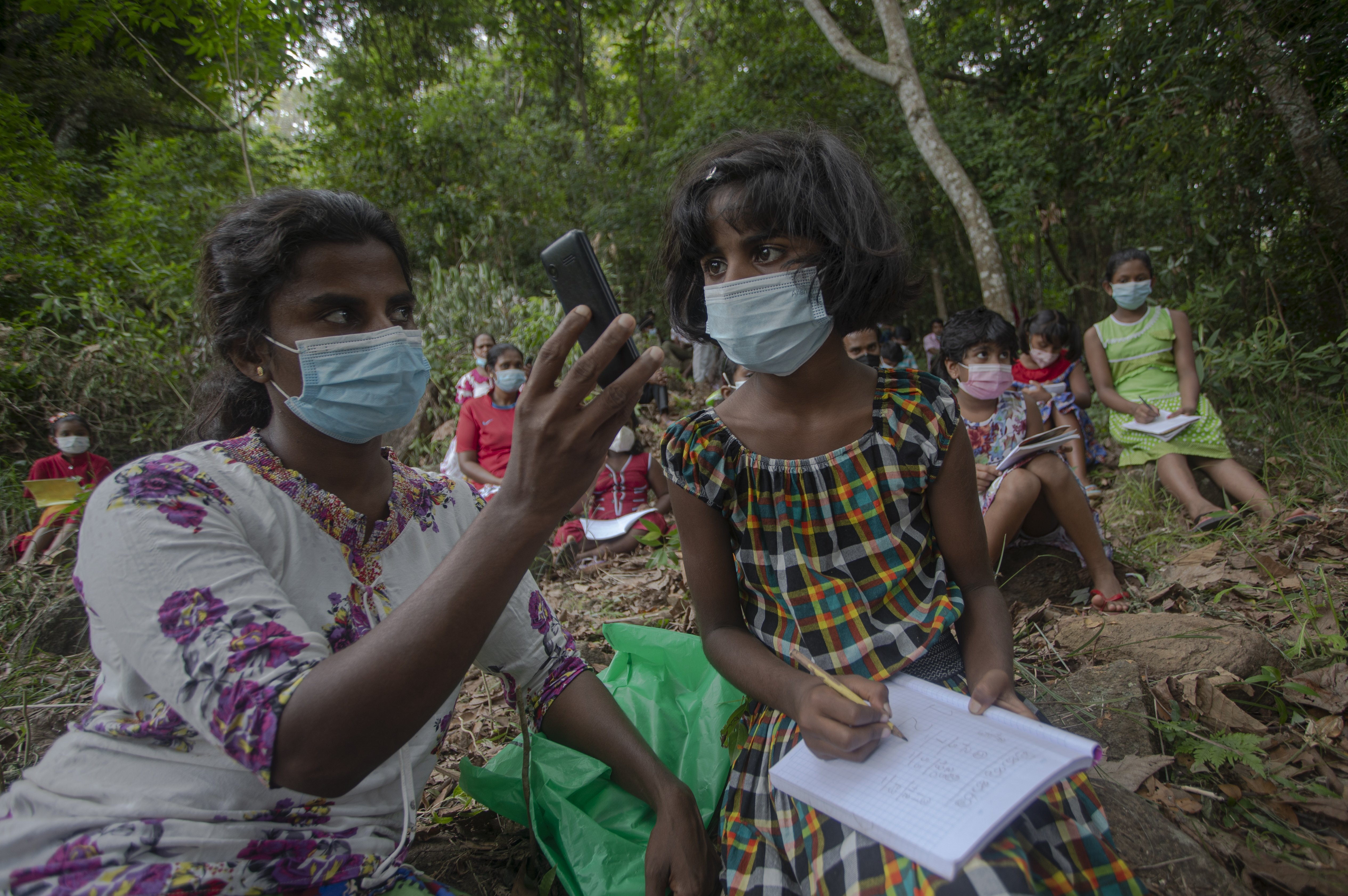 Getting online school lessons for this remote Sri Lankan village requires a trek of more than three kilometres (about two miles) in dense bushes, sometimes visited by leopards and elephants.
