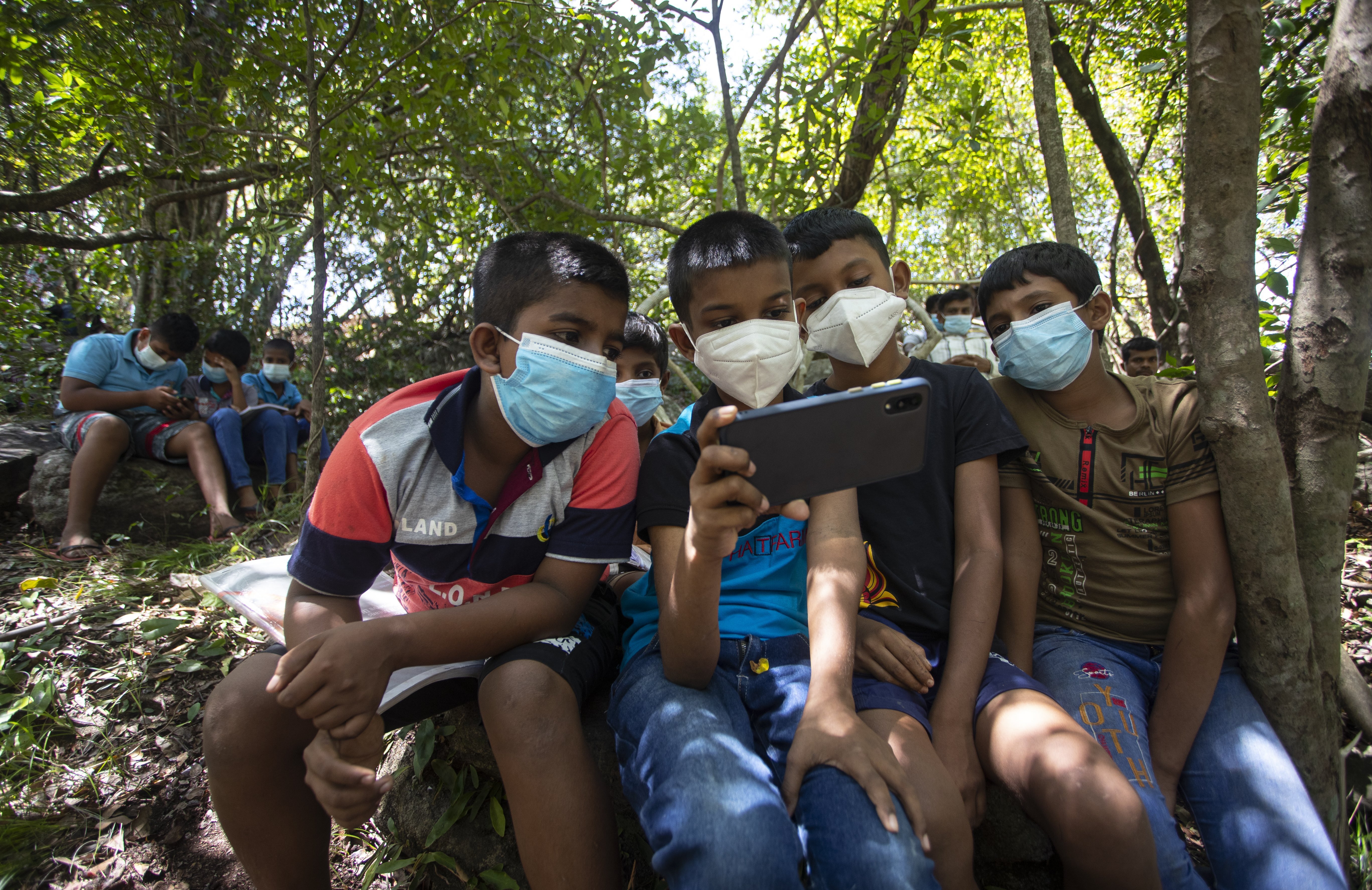 Not all have mobiles or laptops, with four or five children sharing one device.