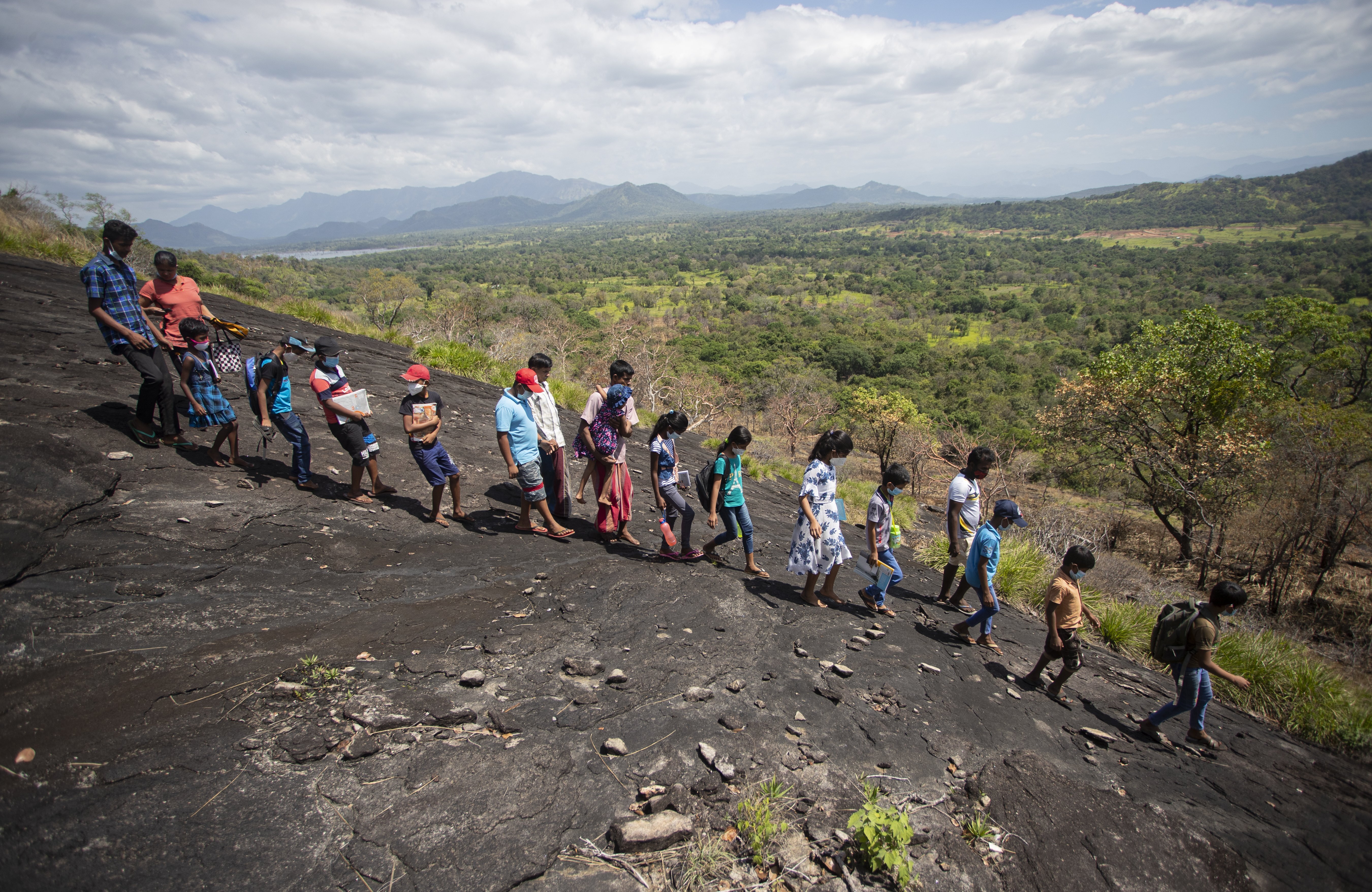 Their parents, most of whom are farmers, often accompany their children. HM Pathmini Kumari, who accompanies his sixth-grade son, says the children climb the rock twice a day and their safety is a big concern for parents.