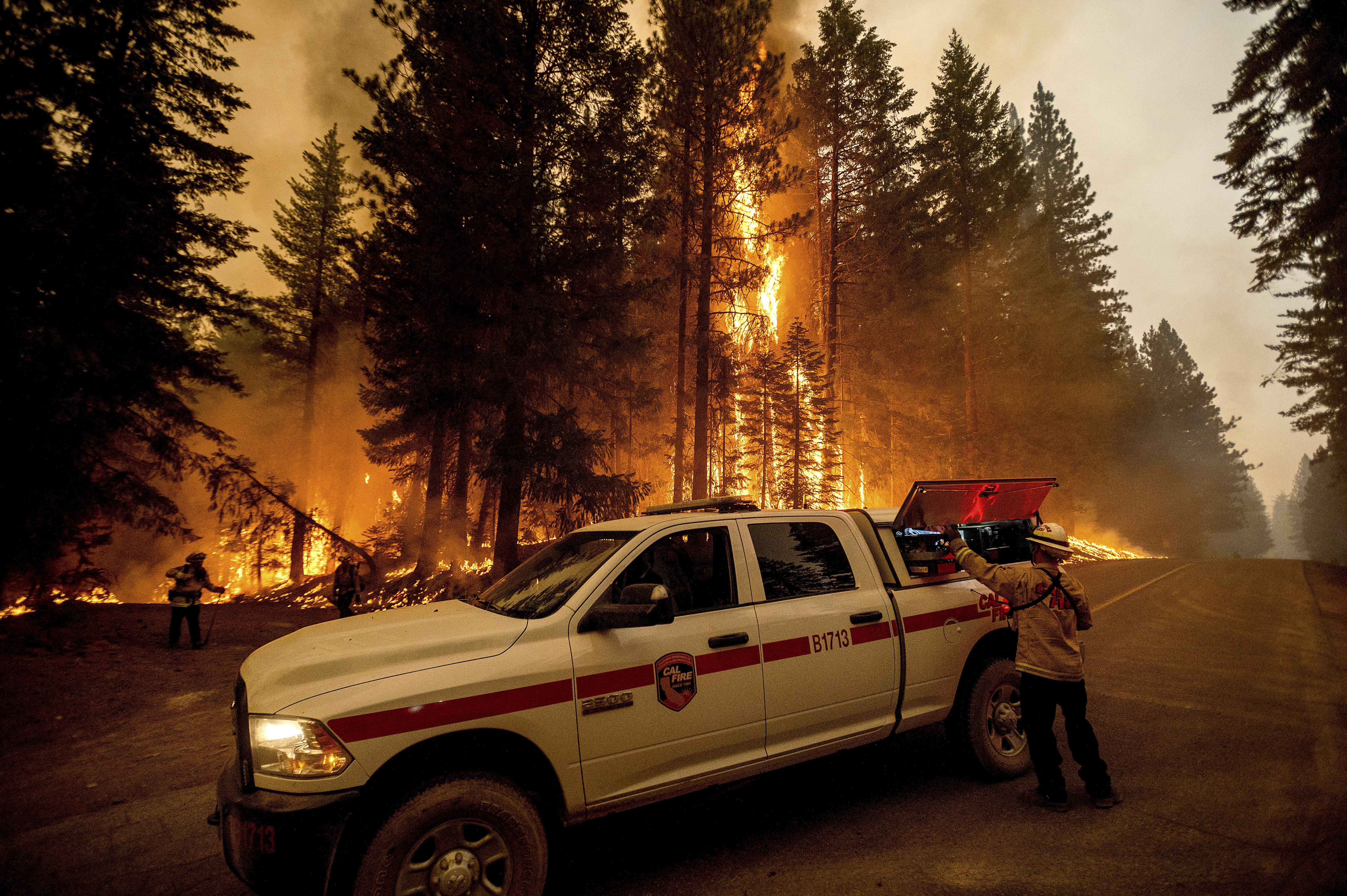 Elsewhere in California, the Tamarack fire south of Lake Tahoe continued to burn through timber and chaparral and threatened communities on both sides of the California-Nevada state line. The fire, sparked by lightning on July 4 in Alpine County, has destroyed at least 10 buildings.